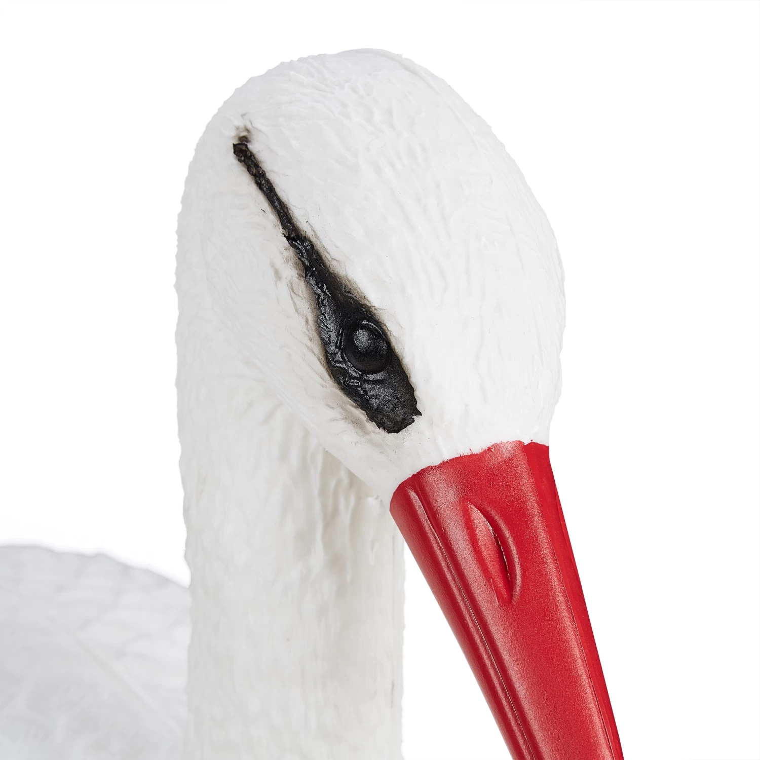 Sorgen sie mit dieser Storch Dekofigur für ein lebendiges Flair in Ihrem Garten. Das Dekotier ist nicht nur eine tolle Gartendekoration – platzieren Sie die Storchfigur neben Ihren Teich, wo der Reiherschreck als Abschreckung gegen Vögel auf Beutezug dient. Oder stellen Sie den Klapperstorch zur Geburt eines Babys auf Balkon oder Terrasse, um das frohe Ereignis anzukündigen. Dank des Erspießes, mit dem die Teichfigur fest im Boden verankert wird, kann Ihnen der Storch auch nicht davonfliegen.