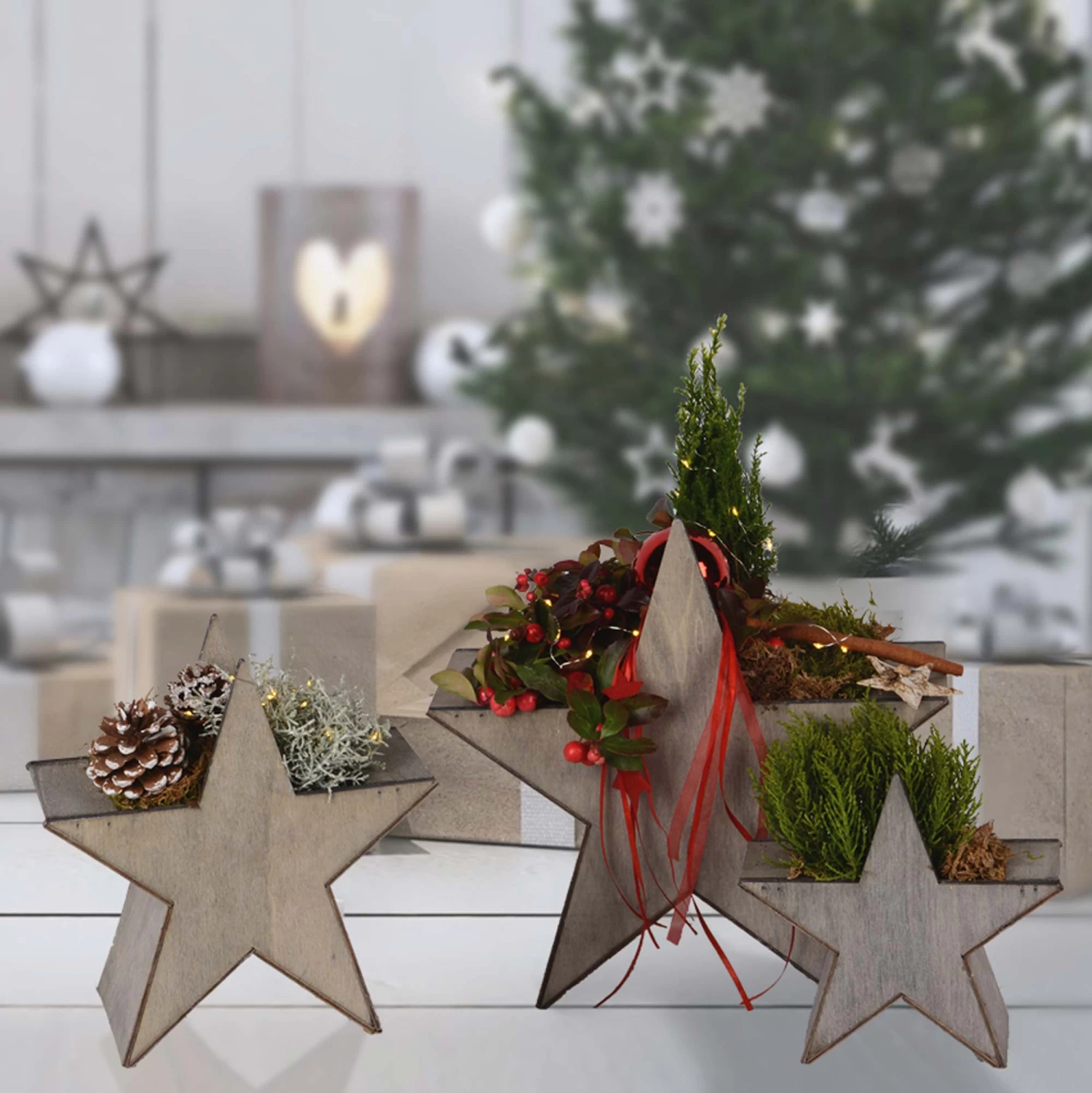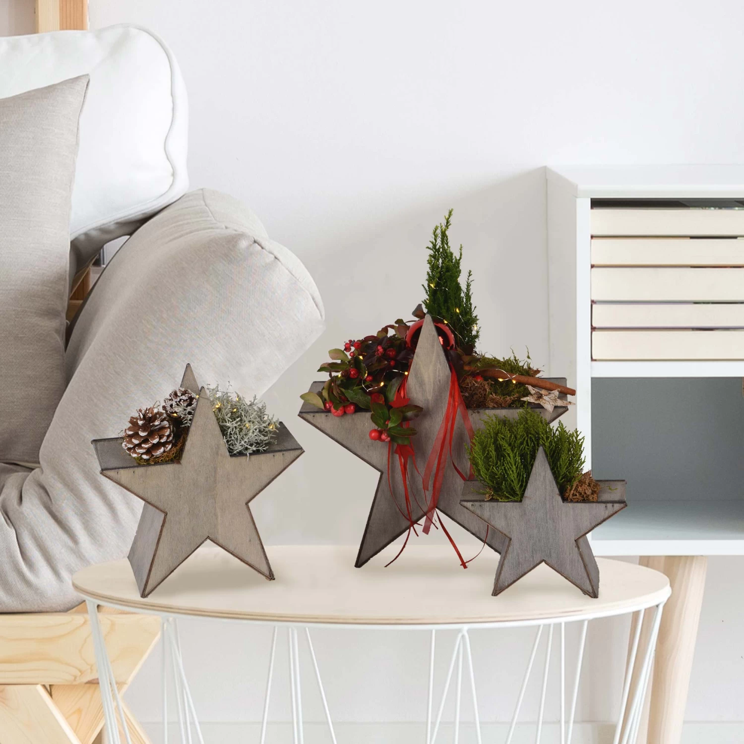 Deko Stern aus Holz zum Bepflanzen oder Dekorieren im 3er Set