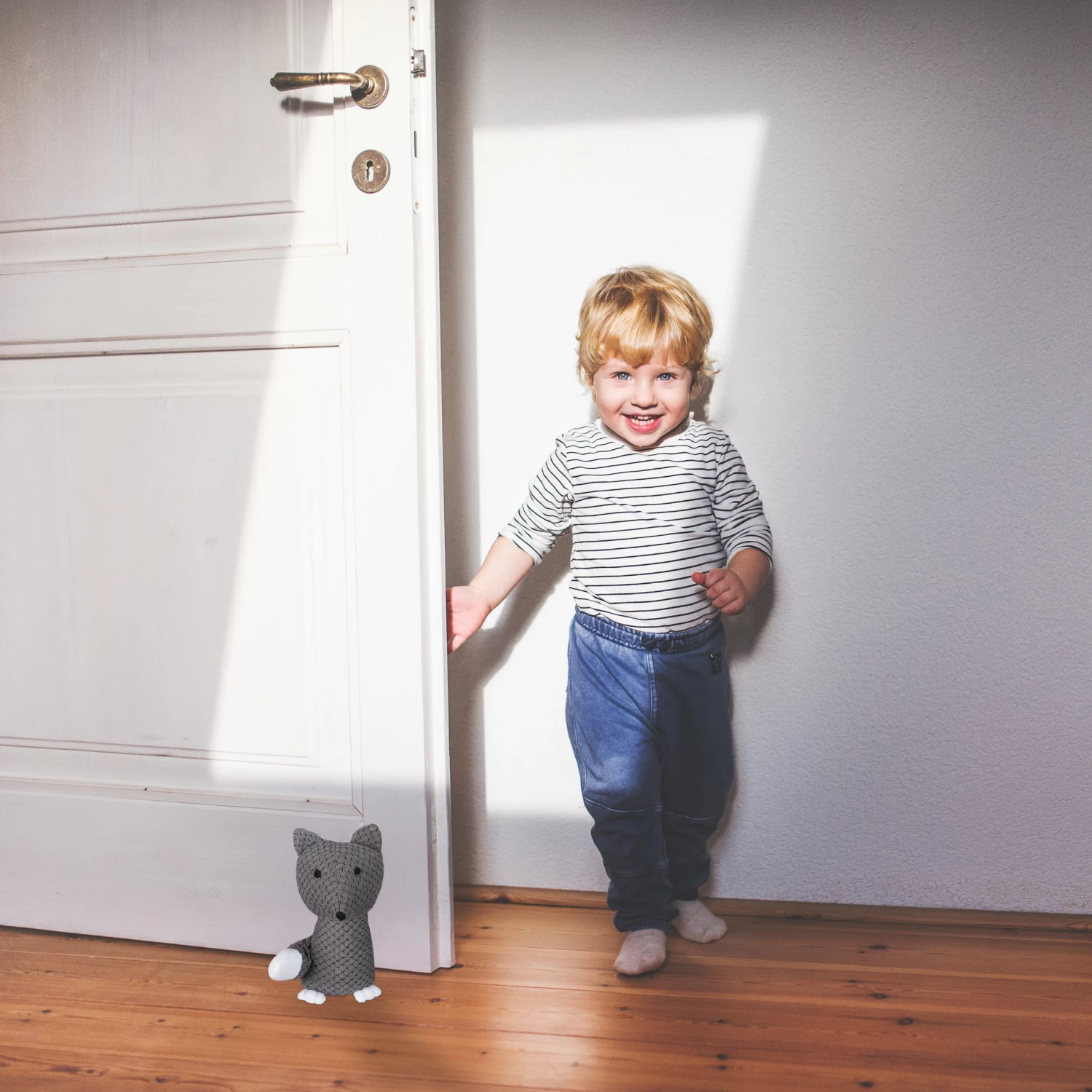 Der Türstopper aus Stoff überzeugt durch sein niedliches Design in Form eines putzigen Fuchses. Der Türpuffer muss nicht am Boden oder der Wand befestigt werden und kann einfach angehoben und jederzeit flexibel neu platziert werden.