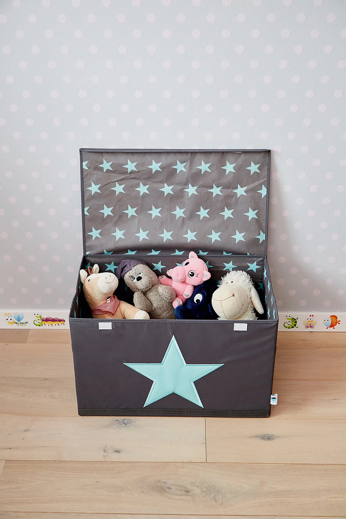 Die Aufbewahrungsbox „Star“ von STORE IT! Ist wunderschön und praktisch zugleich! In der tollen Box mit Stern-Motiv können ohne viel Aufwand alle herumliegenden Spielzeuge und Kuscheltiere verstaut werden. Die Box ist allerdings auch für viele andere Zwecke verwendbar und lässt jeden Raum im Nu ordentlicher werden.