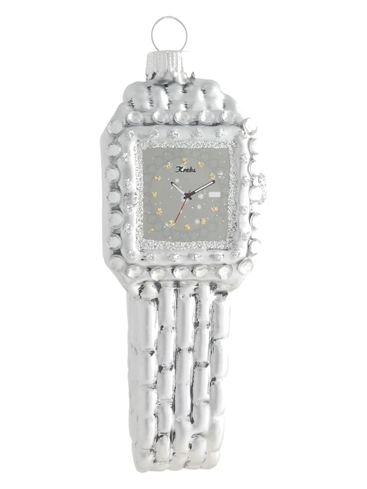 Christbaumornament „Damenuhr“ In Silber – (L)10 Cm