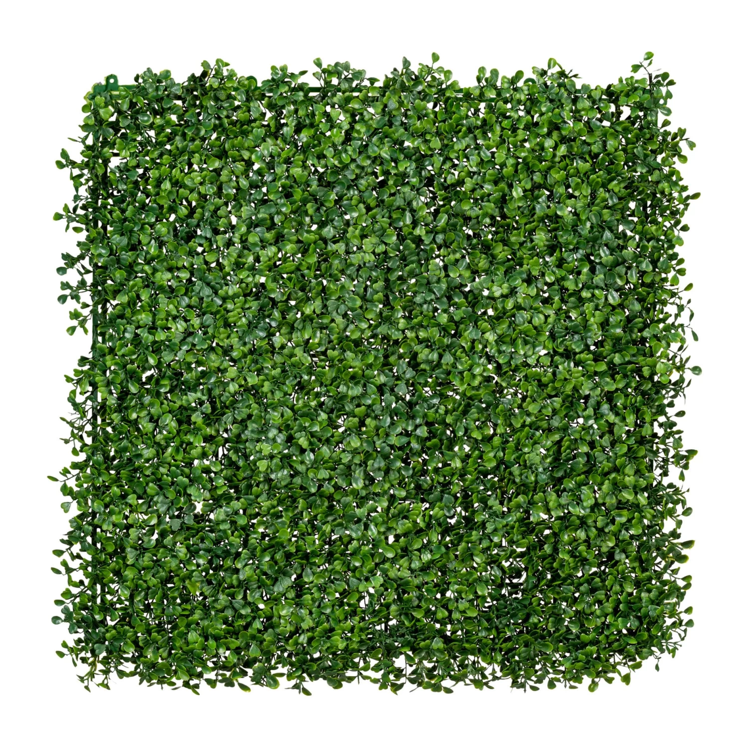 Ein trendiger Blickfang! Sei kreativ und verwirkliche Deine individuellen Dekorations-Ideen mit dieser Matte aus einem feingearbeiteten Mix aus Buchsbaumzweigen. Außerdem länger UV-beständig präsentiert sich diese Buchsbaummatte. UV-Strahlen können bei starker Sonneneinstrahlung zu Verfärbungen bei Kunstpflanzen führen. UV-beständige Kunstpflanzen sind mit einem zusätzlichen UV-Schutz versehen, so dass die künstliche Pflanze besser für sonnige Standorte geeignet ist. Jede Matte verfügt über Ösen und Haken, somit können mehrere Matten verbunden werden. Detailgetrau aus Kunststoff gefertigt, langlebig und vielseitig einsetzbar sind in der Anwendung so gut wie keine Grenzen gesetzt: sei es als Bodendecker in Pflanzen-Arrangements oder mehrzählig als komplett begrünte Wand in Deinem Zuhause – Du und Deine Besucher werden begeistert sein. Die Matte hat die Größe ca. 50x50x7 cm. Die Matte besteht aus Kunststoff.