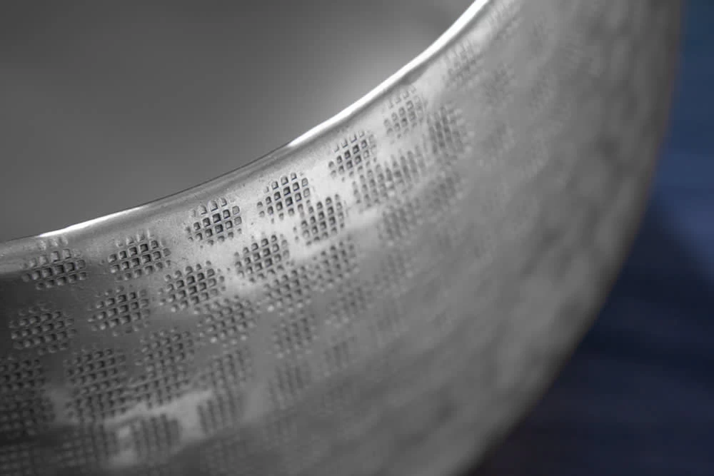 – das Hammerschlag-Design wird in Handarbeit angefertigt