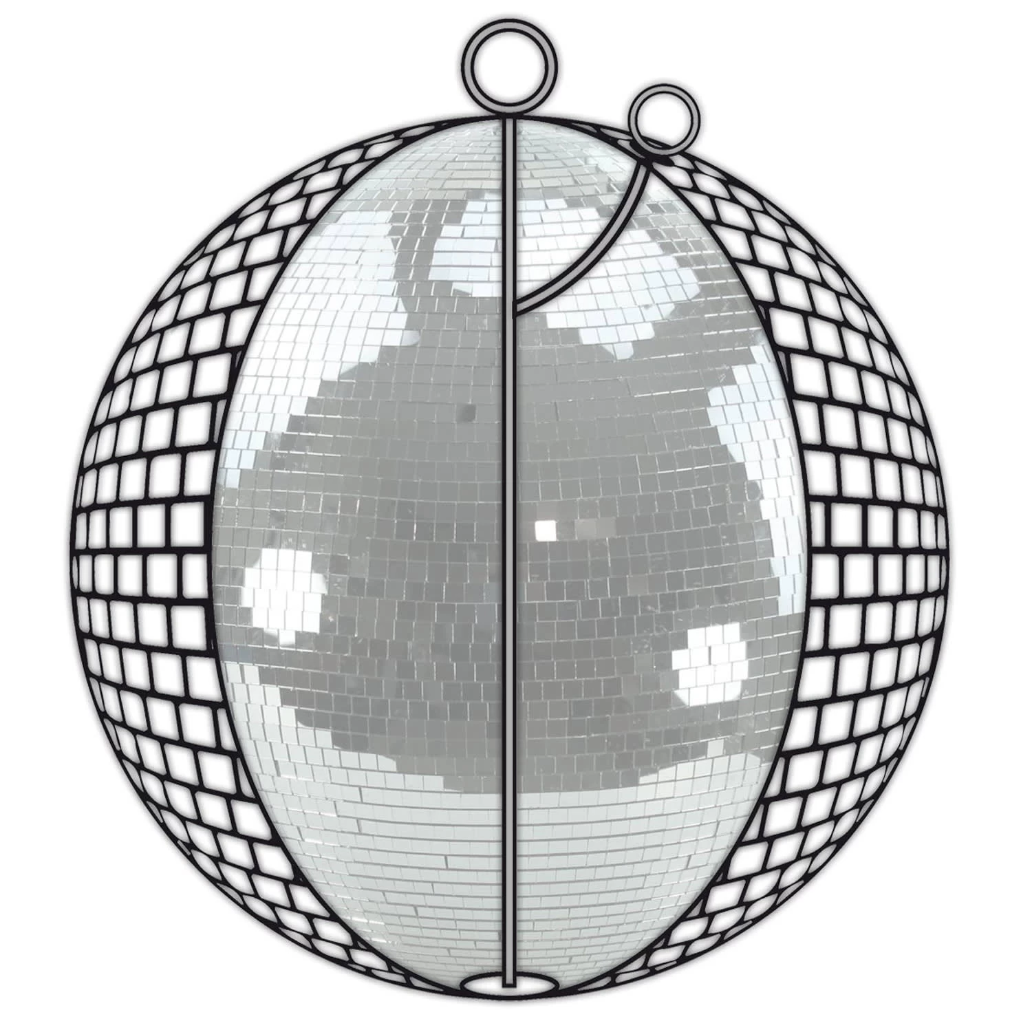 Qualitäts Spiegelkugel / Discokugel mit 40cm Durchmesser Stabiler, formstabiler Kunststoffkern mit durchgehender Metallachse Echtglasfacetten (10x10mm) aus bedampften Hochglanzspiegel Aufhängung aus Stahl mit Metallöse