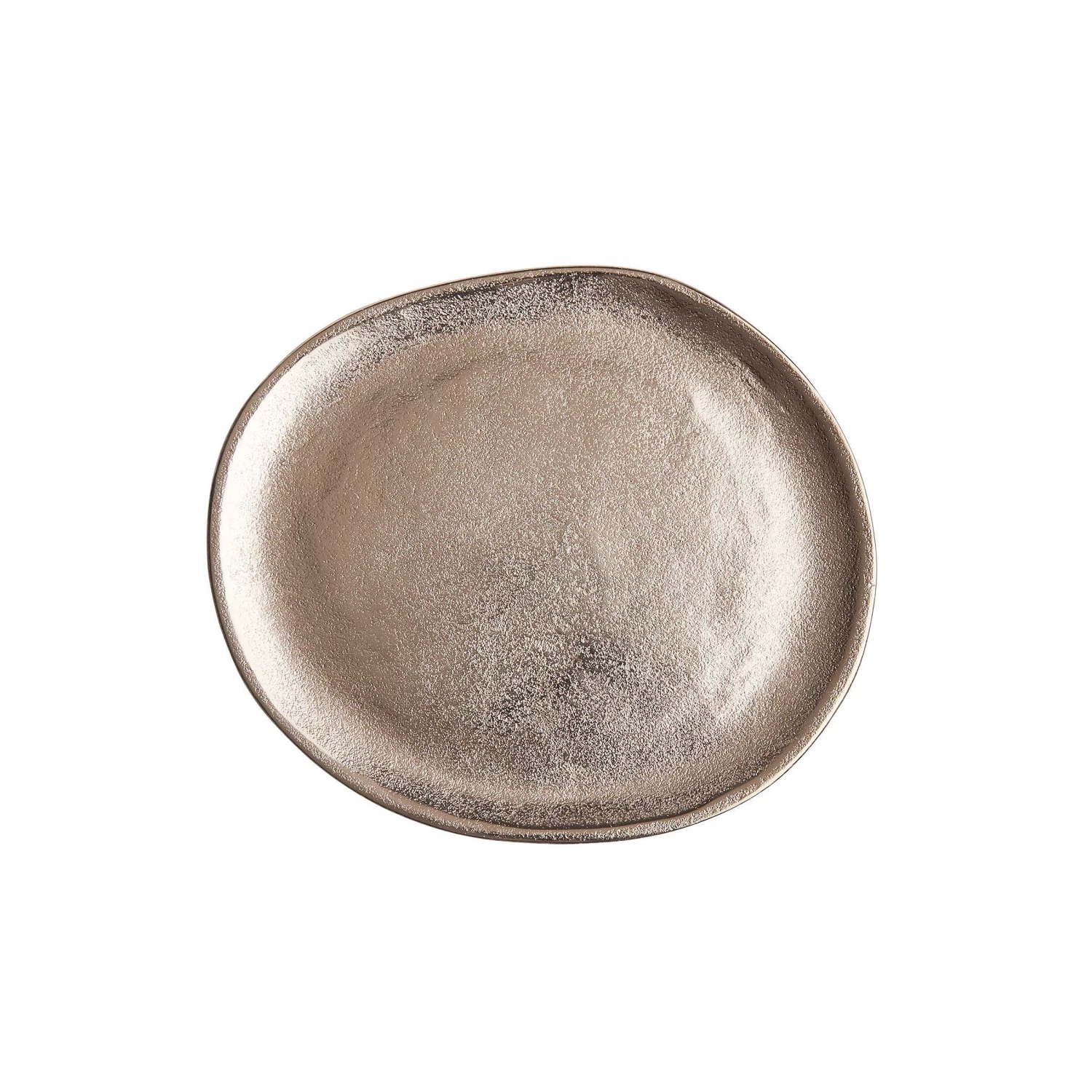 Aus einem früheren Jahrhundert könnte der Banquet-Teller Ø 22 cm mit seinem gold-farbenem Glanz und seiner strukturierten Oberfläche stammen. Und genau wie damals verschönert er die Tafel und den Raum mit seiner organischen Form. Aus Aluminium, mit Softpads an der Unterseite.