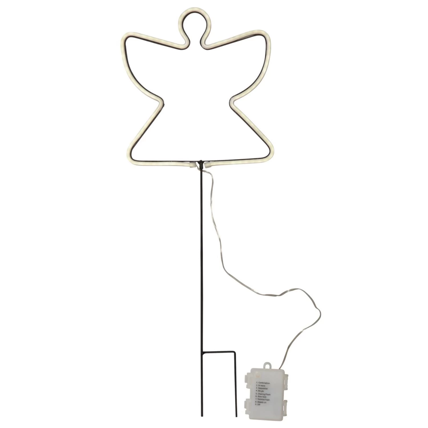 LED Neon Gartenstecker Engel – 102 weiße LED – H: 65cm – 8 Funktionen – Timer – Batterie Moderne und weihnachtliche Dekoration aus Lichtschlauch, die in die Form von einem Engel gebogen ist. Im Innern leuchten 102 kleine LED in weißem Licht. Den Engel kannst Du über die am Kabel befindliche Steuerung animieren. Blinken, Dimmer oder Dauerleuchten sind möglich.