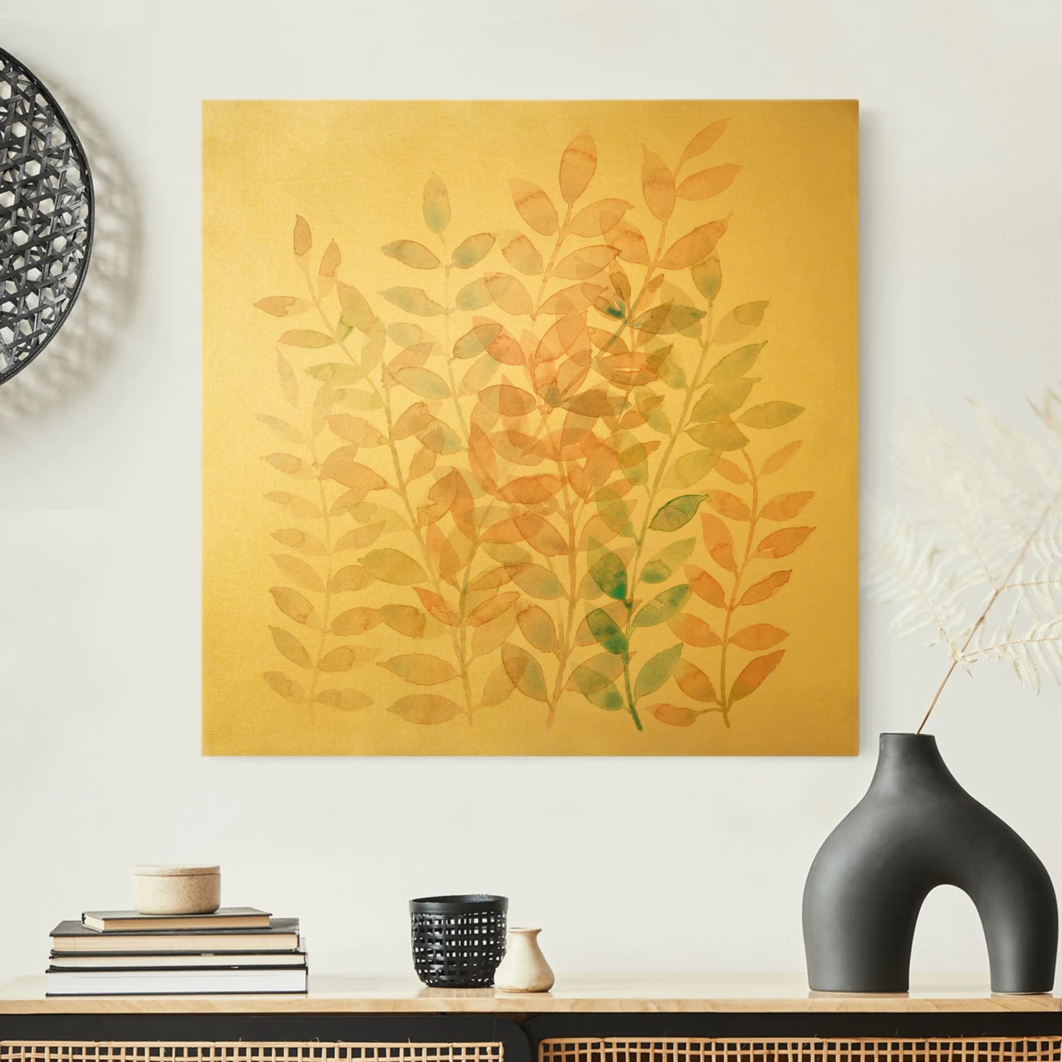 Leinwandbild Gold – Sommerlicher Blätterreigen In Orange