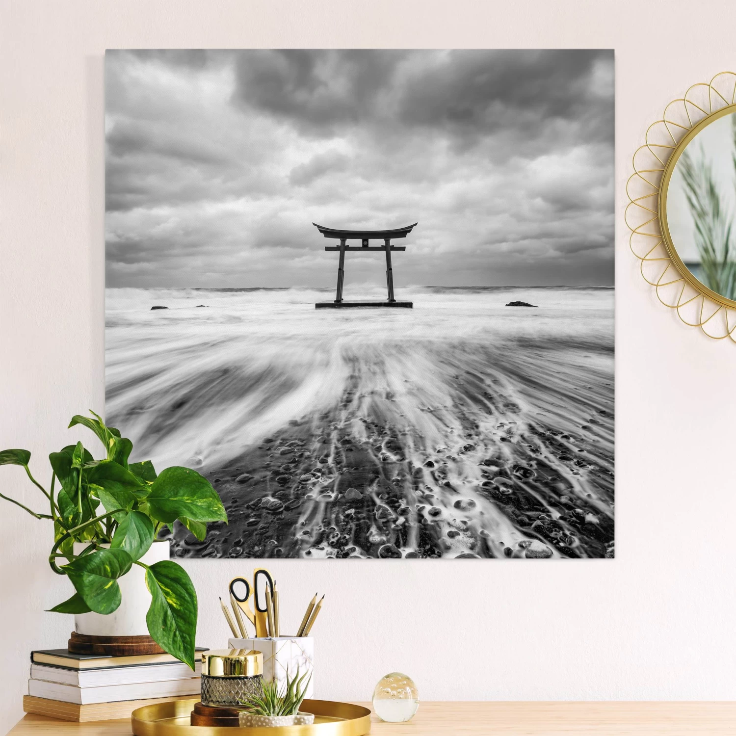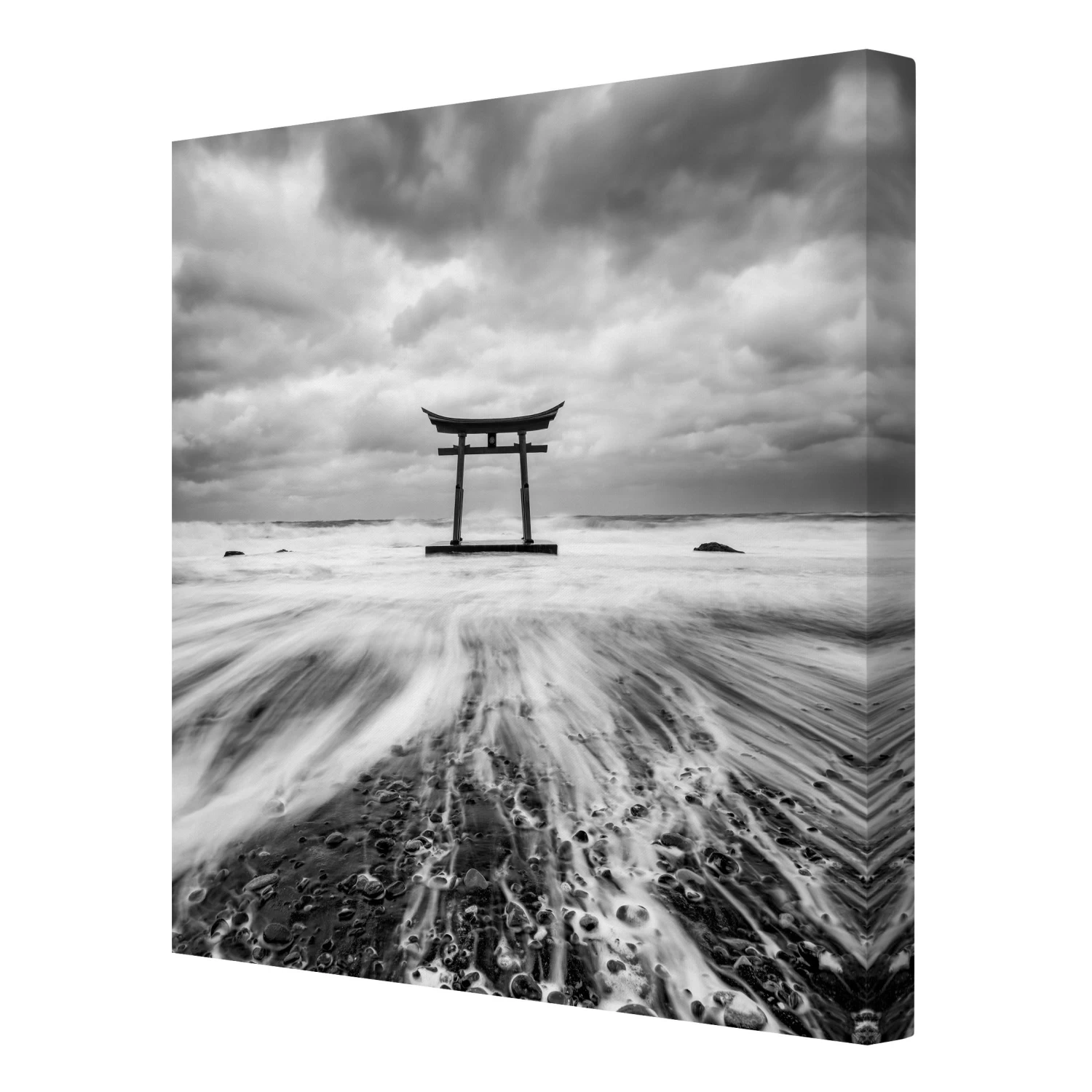 Leinwandbild – Japanisches Torii Im Meer In Schwarz-Weiß