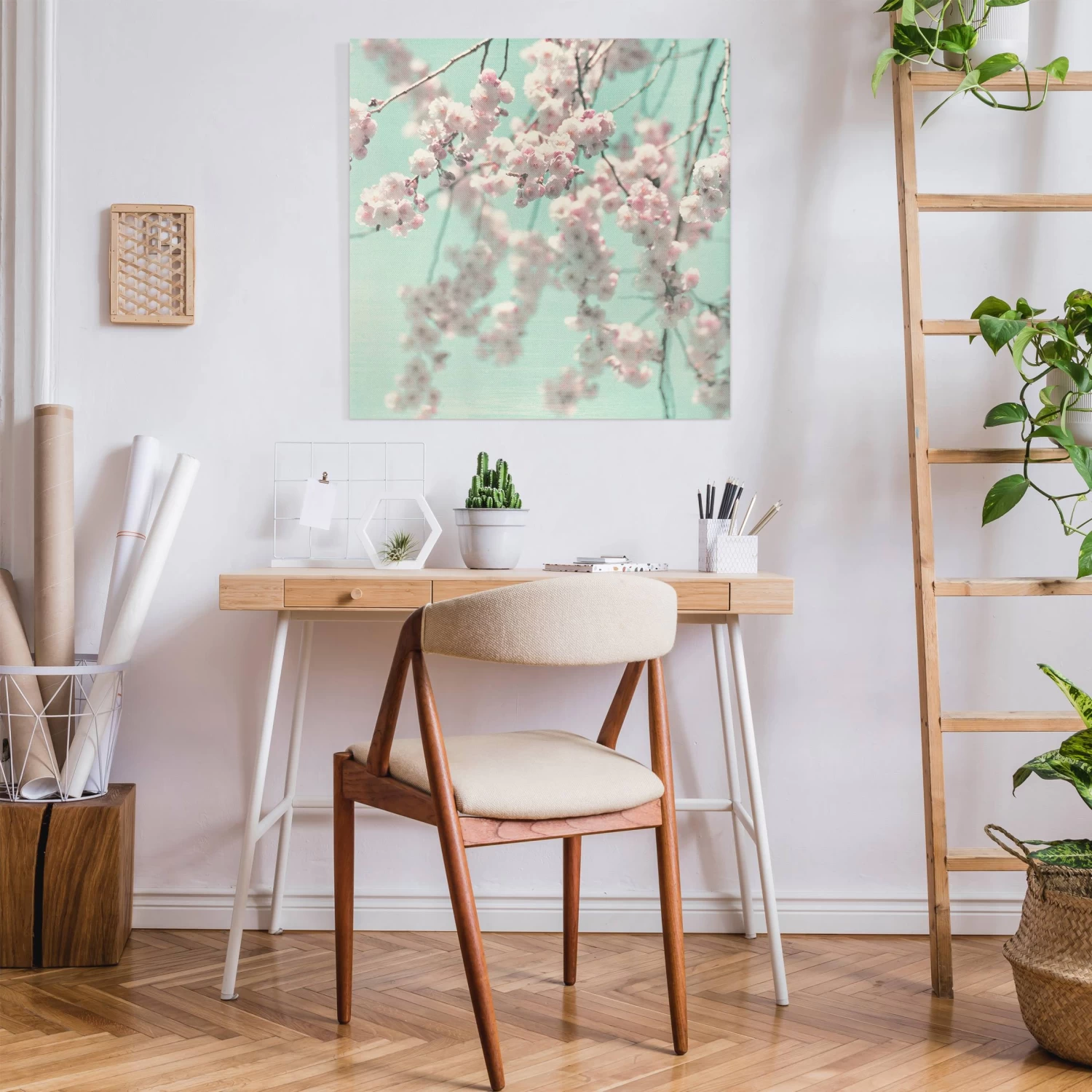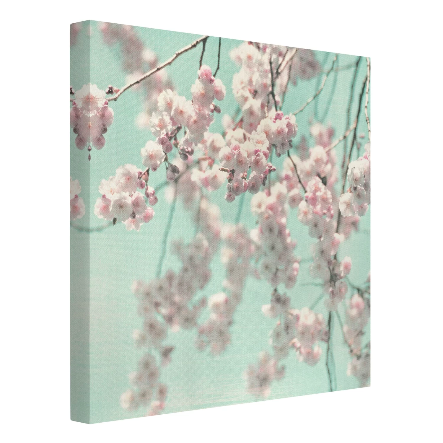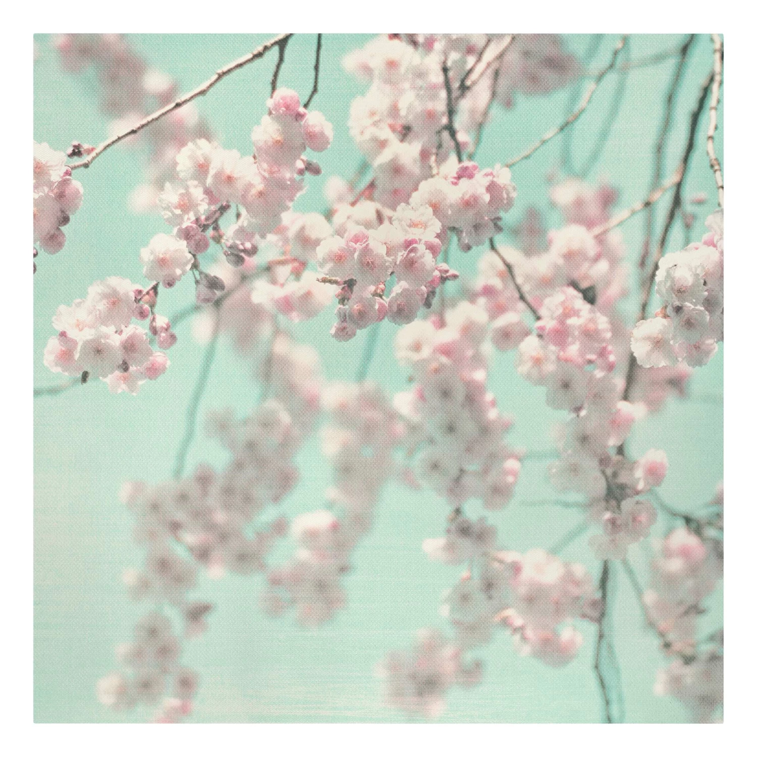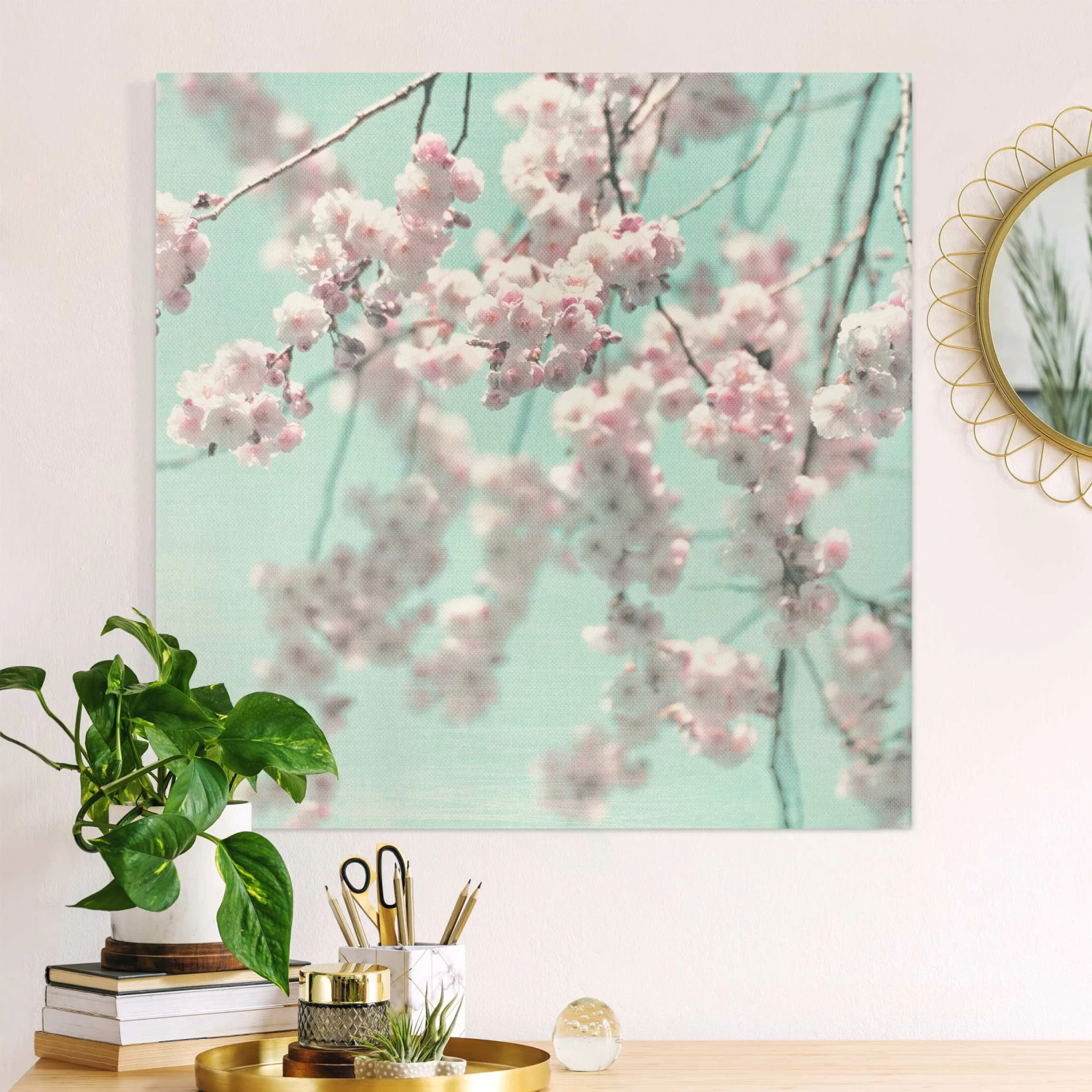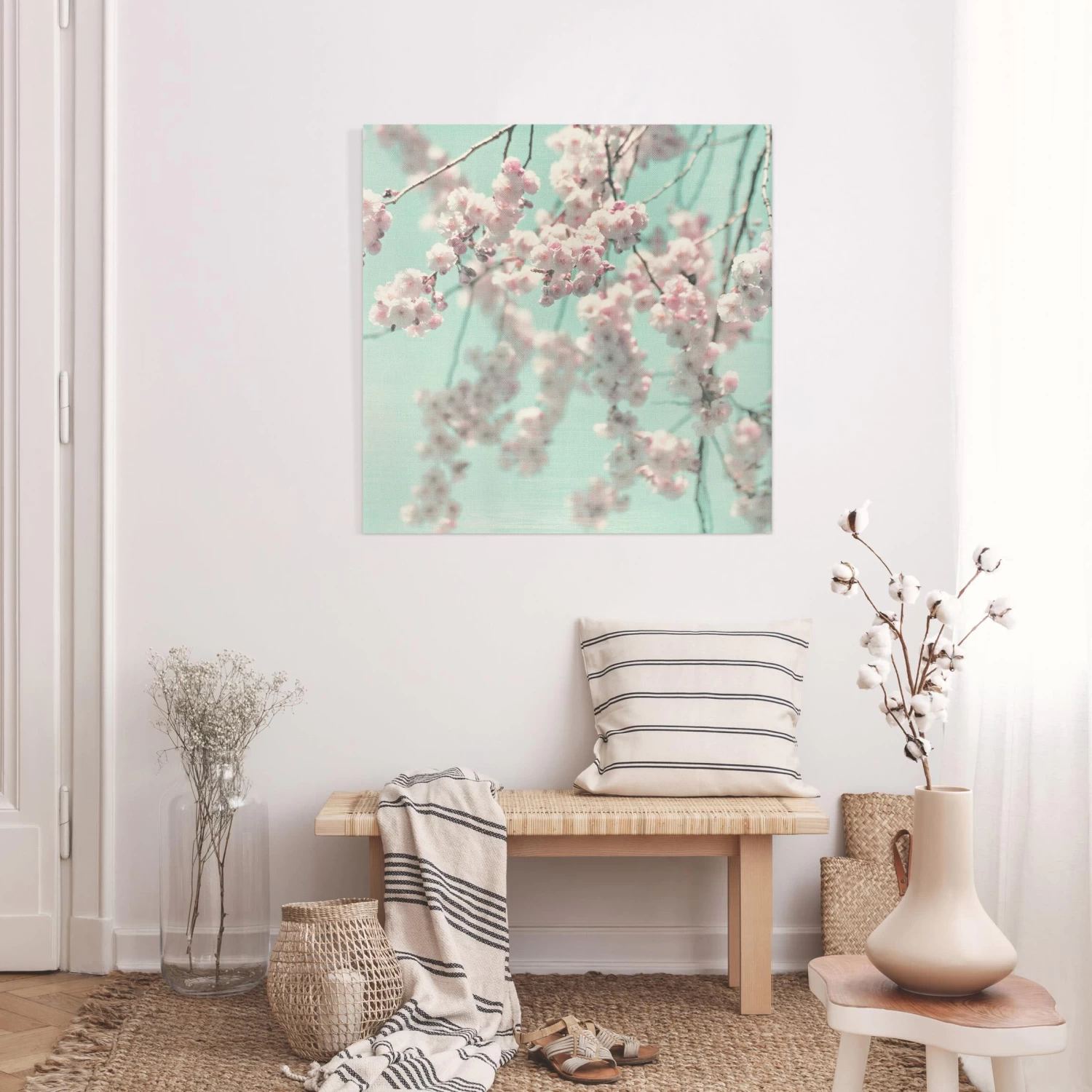 Leinwandbild – Kirschblütentanz Auf Leinenstruktur In Creme-Beige