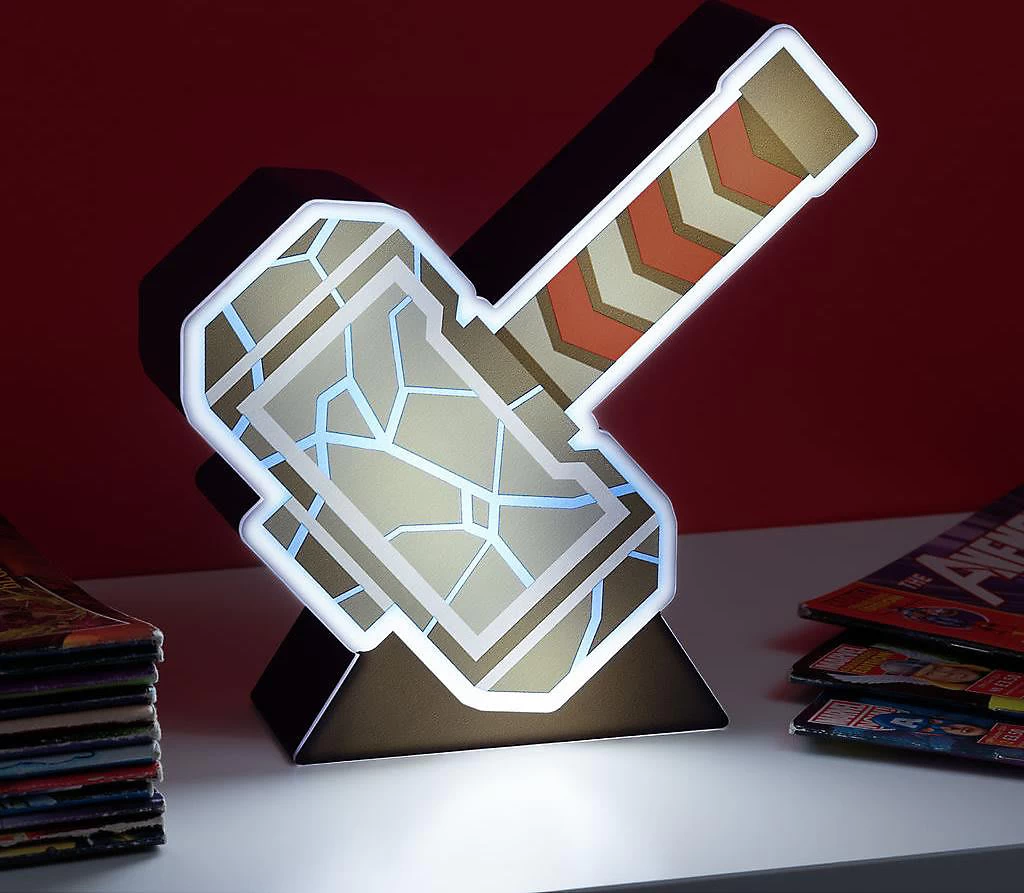 Für alle Thor Fans kommt mit dieser großartigen hors Hammer 2D Leuchte eine Lichtquelle und ein richtiger Hingucker für jeden Raum. Ob als coole Ergänzung für die Sammlung, oder als Heimdekoration: mit dem beleuchteten Hammer kommt ein Highlight für den Schreibtisch, das Sideboard oder den Nachttisch. Dank des Batteriebetriebs kann die Lampe überall – kabellos – aufgestellt werden.