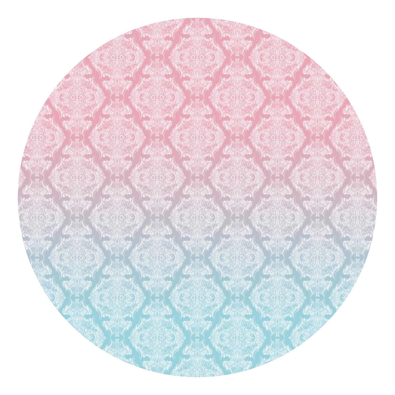 Runde Tapete – Aquarell Barock Muster Mit Blau Rosa Verlauf In Blau