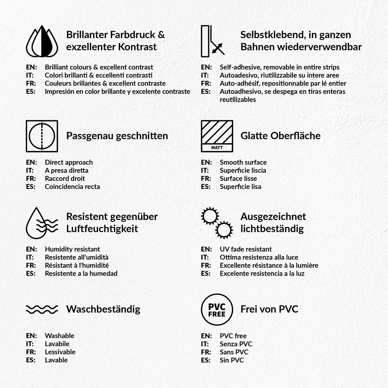 – Kinderleichte Anbringung in nur 1-2 Bahnen, im Ganzen ablösbar