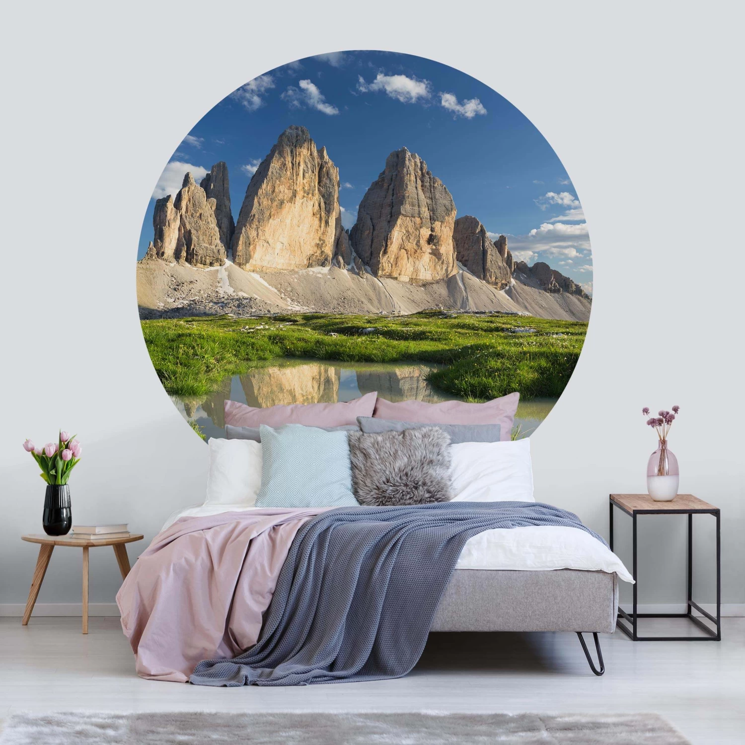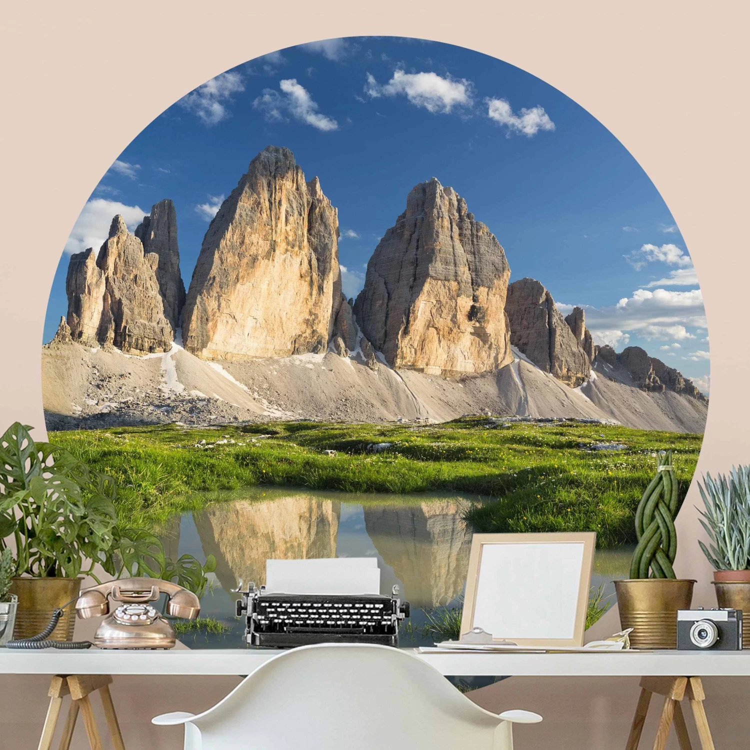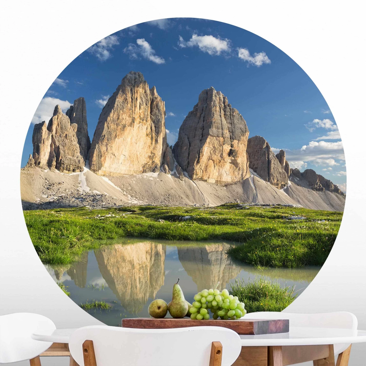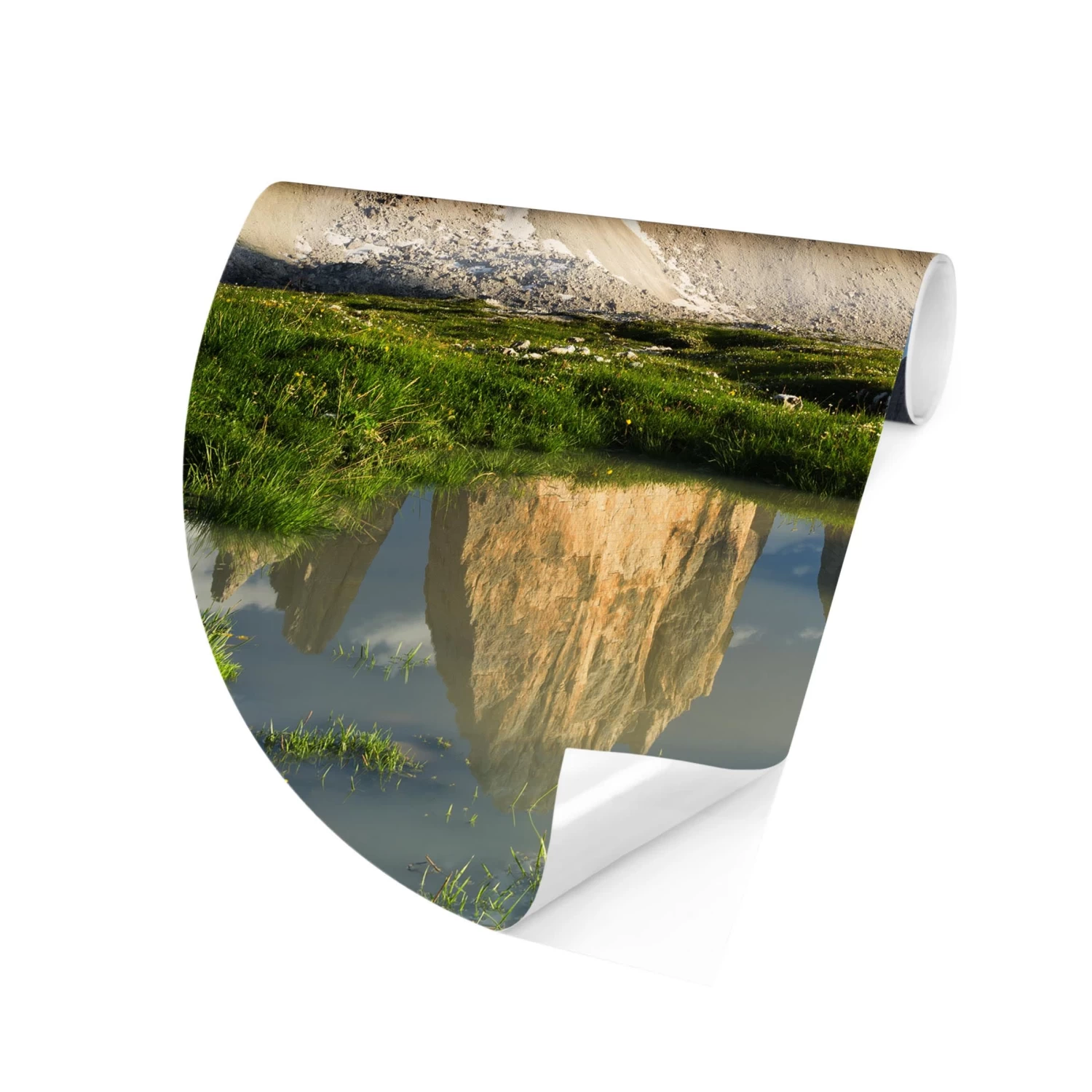 Runde Tapete – Südtiroler Zinnen Und Wasserspiegelung In Grün