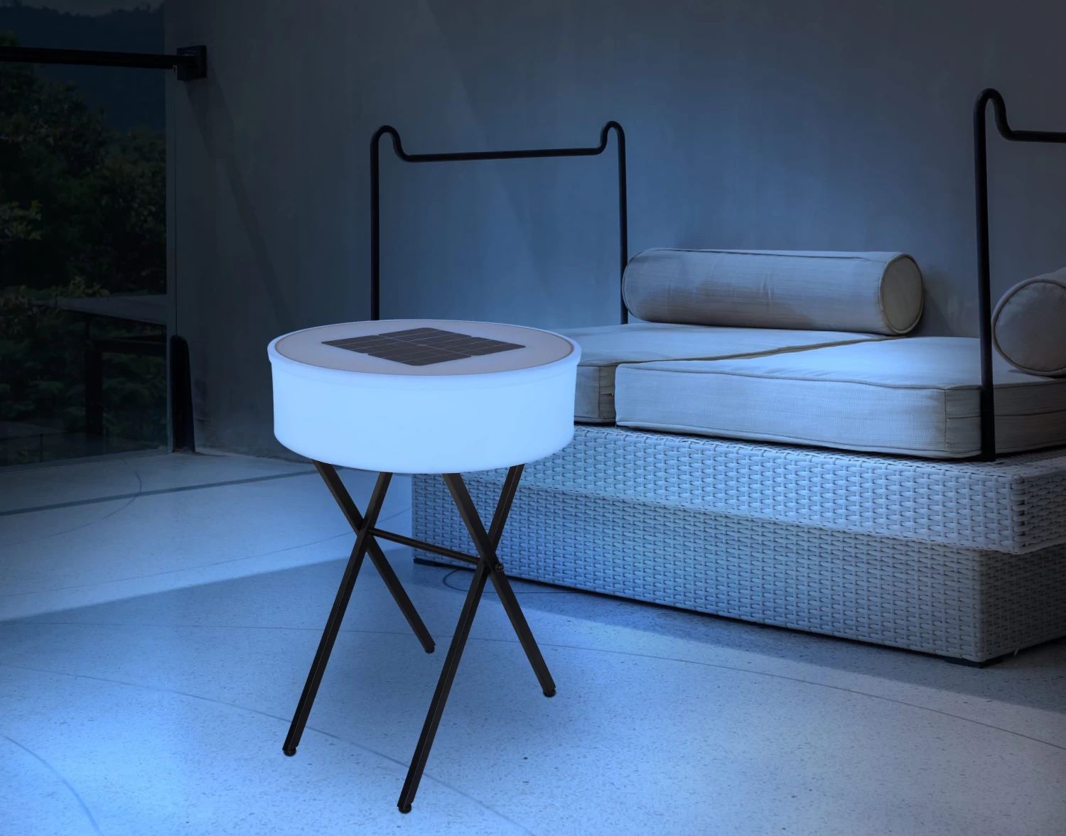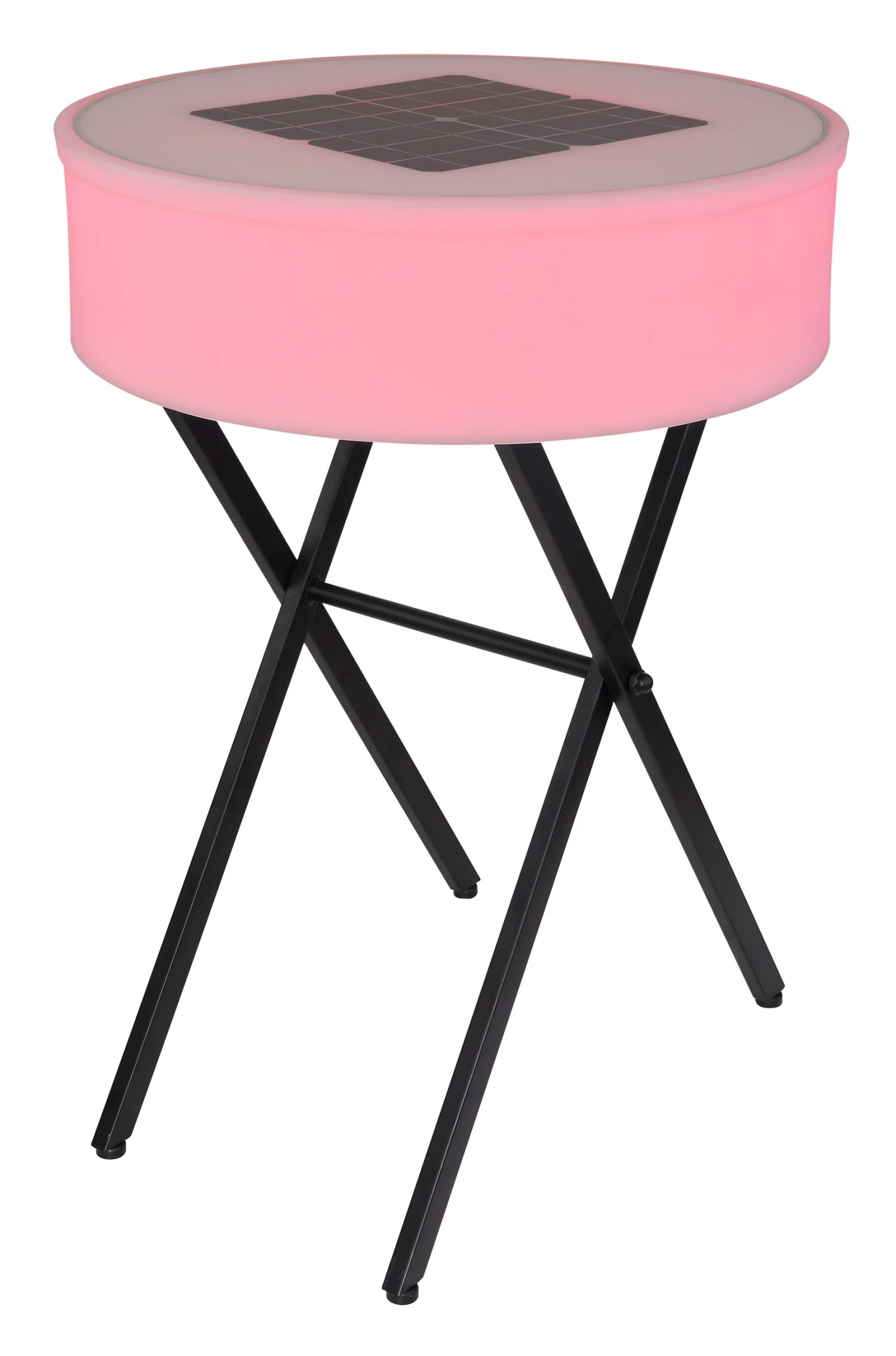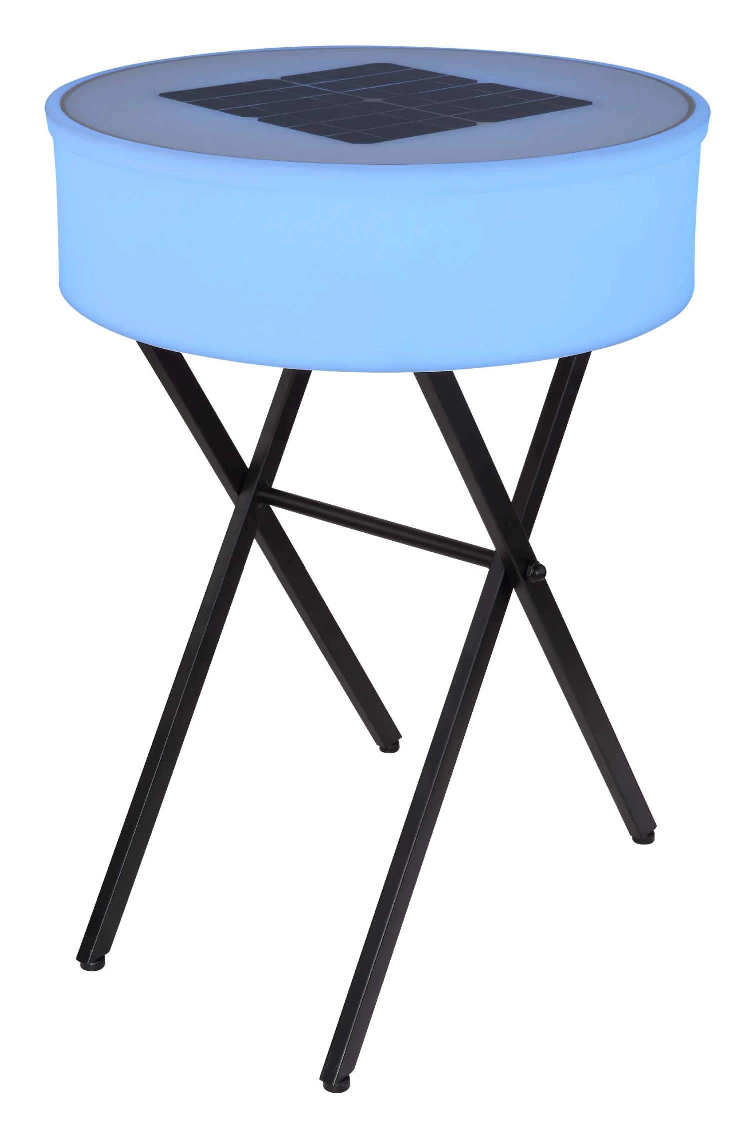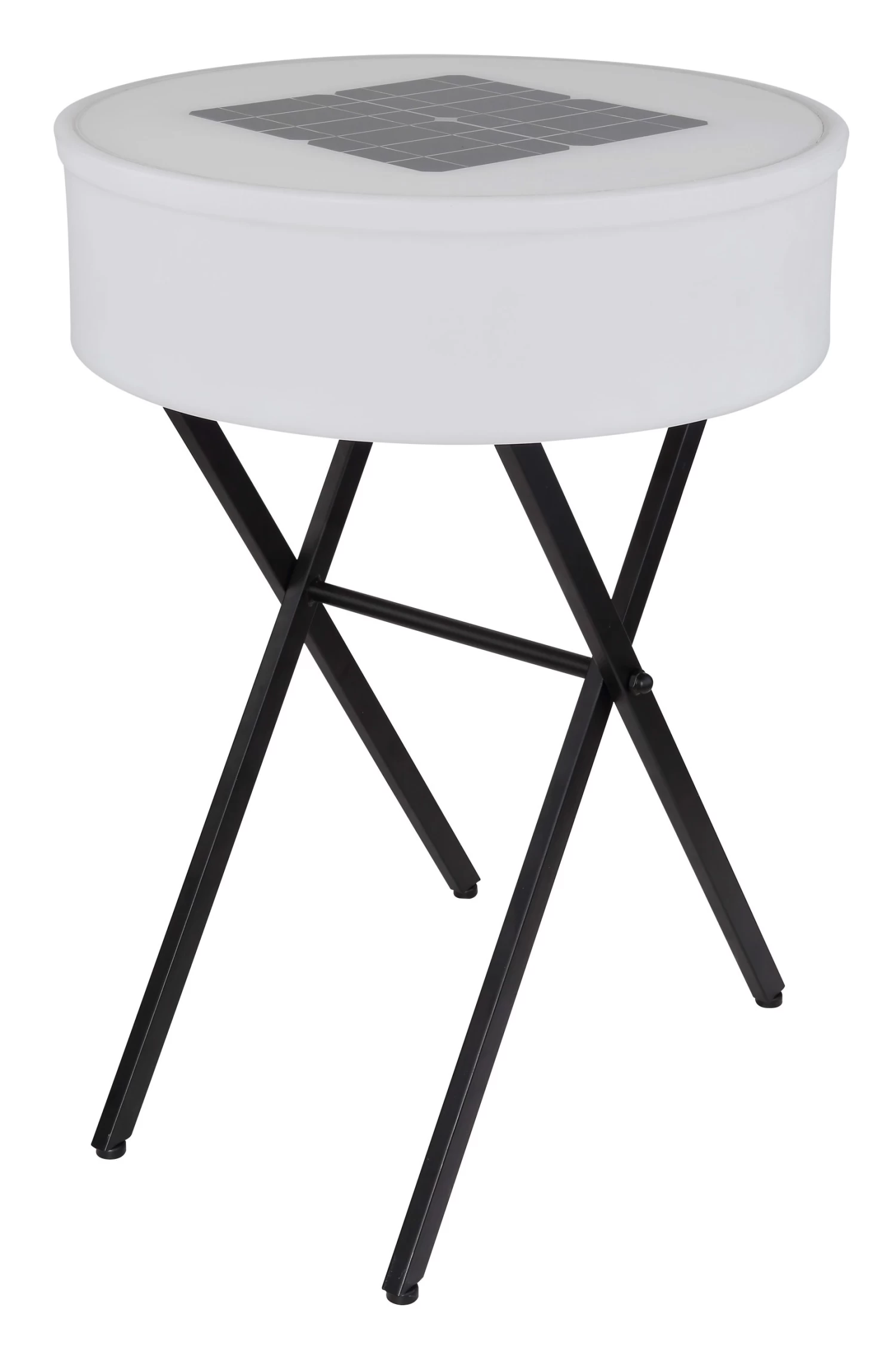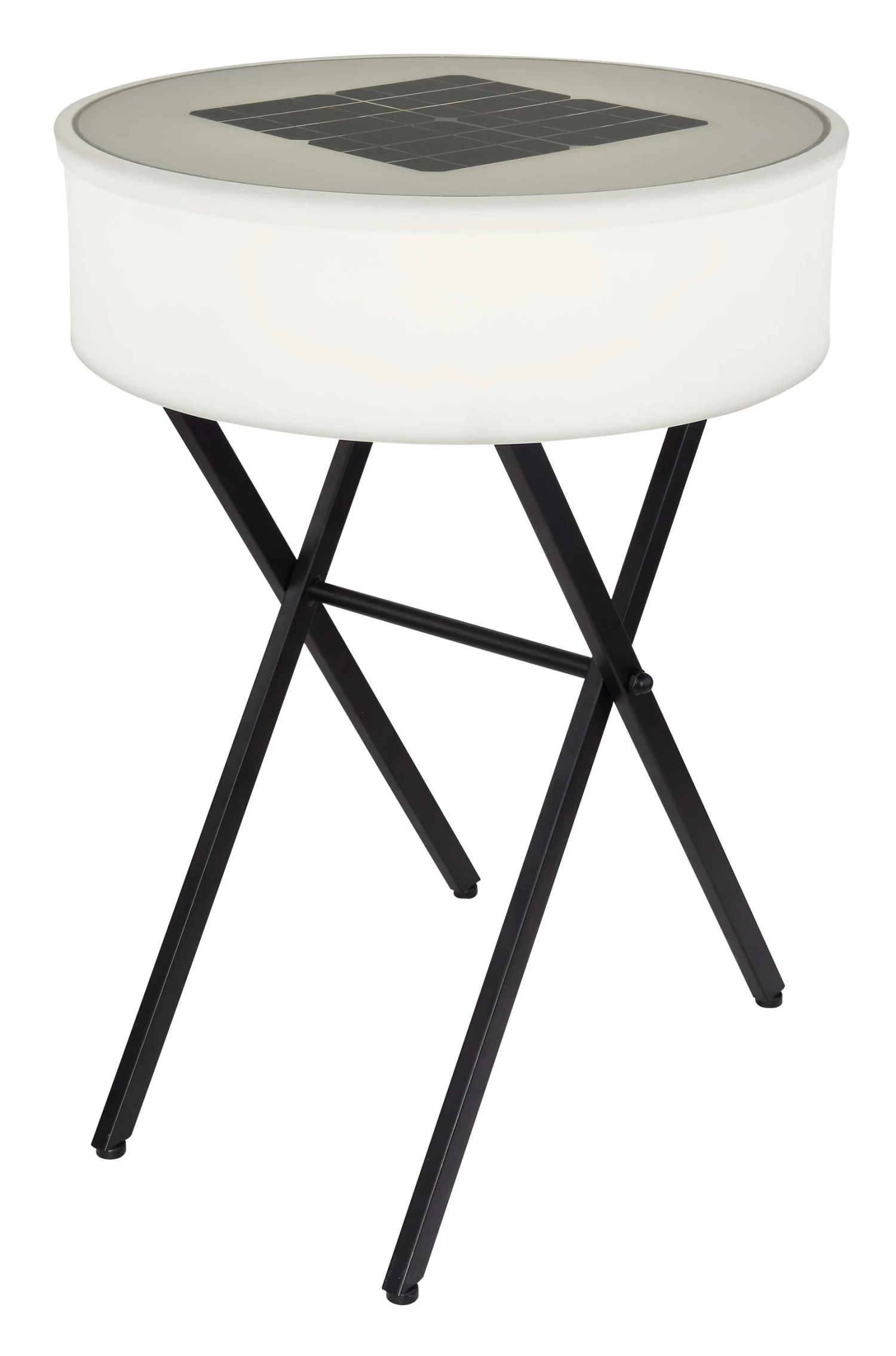 Solarleuchte Metall schwarz matt, Kunststoff opal, weiß, Druckschalter, Farbwechsler, Farben fixierbar, Bluetooth, Fernbedienung, Lautsprecher 8W, Akku inkludiert CR18650 7500mAh 3.7V, Batterie inkludiert 1x CR2032, IP44, runder Tisch, USB, ø: 530mm, H: 750mm, inkl. 10x LED 0.06W 3V, inkl. 10x RGB LED 0.06W 3V