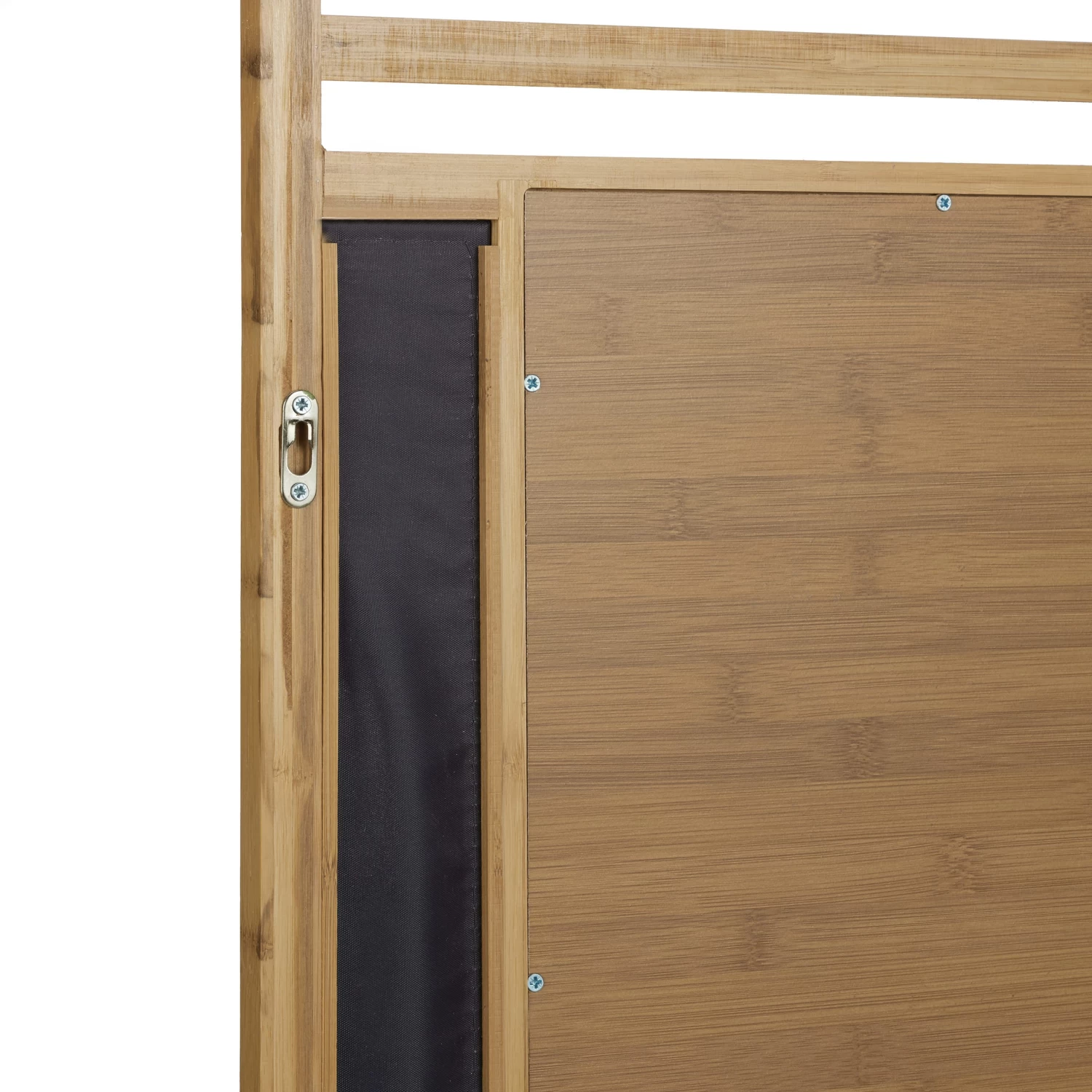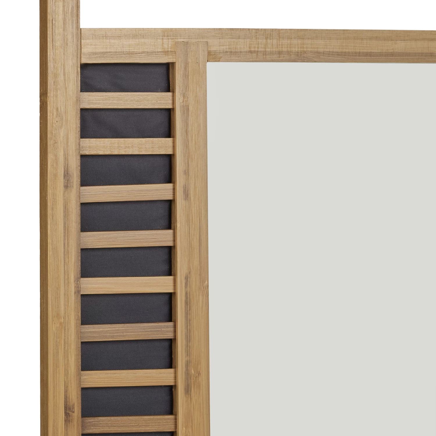 Bringen Sie natürliche Wohnlichkeit in Ihr Zuhause mit dem dekorativen Bambus Spiegel. Ein eckiger Rahmen im Hochformat umfasst das Spiegelglas. Der Rand aus dem exotischem Bambusholz wirkt dank Lamellen-Optik luftig und leicht. An den Seiten ist der Rahmen mit schwarzem Stoff bezogen und bildet einen ansprechenden Kontrast zur Spiegelfläche. Die Wandmontage ist mittels integrierter Aufhängevorrichtungen schnell erledigt.