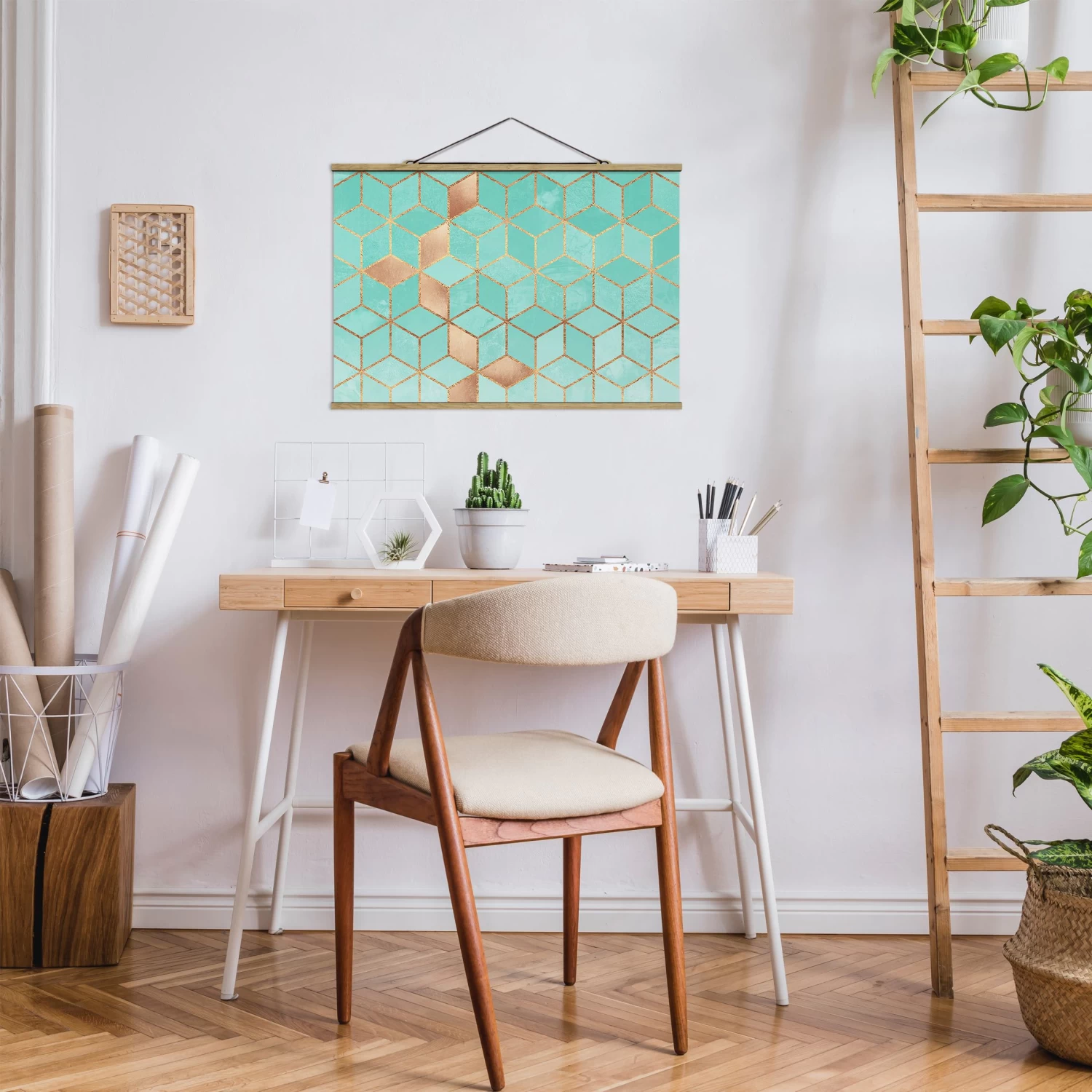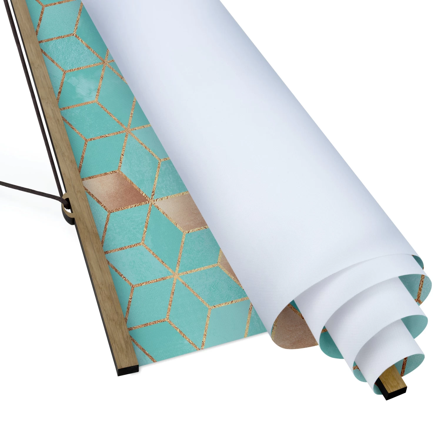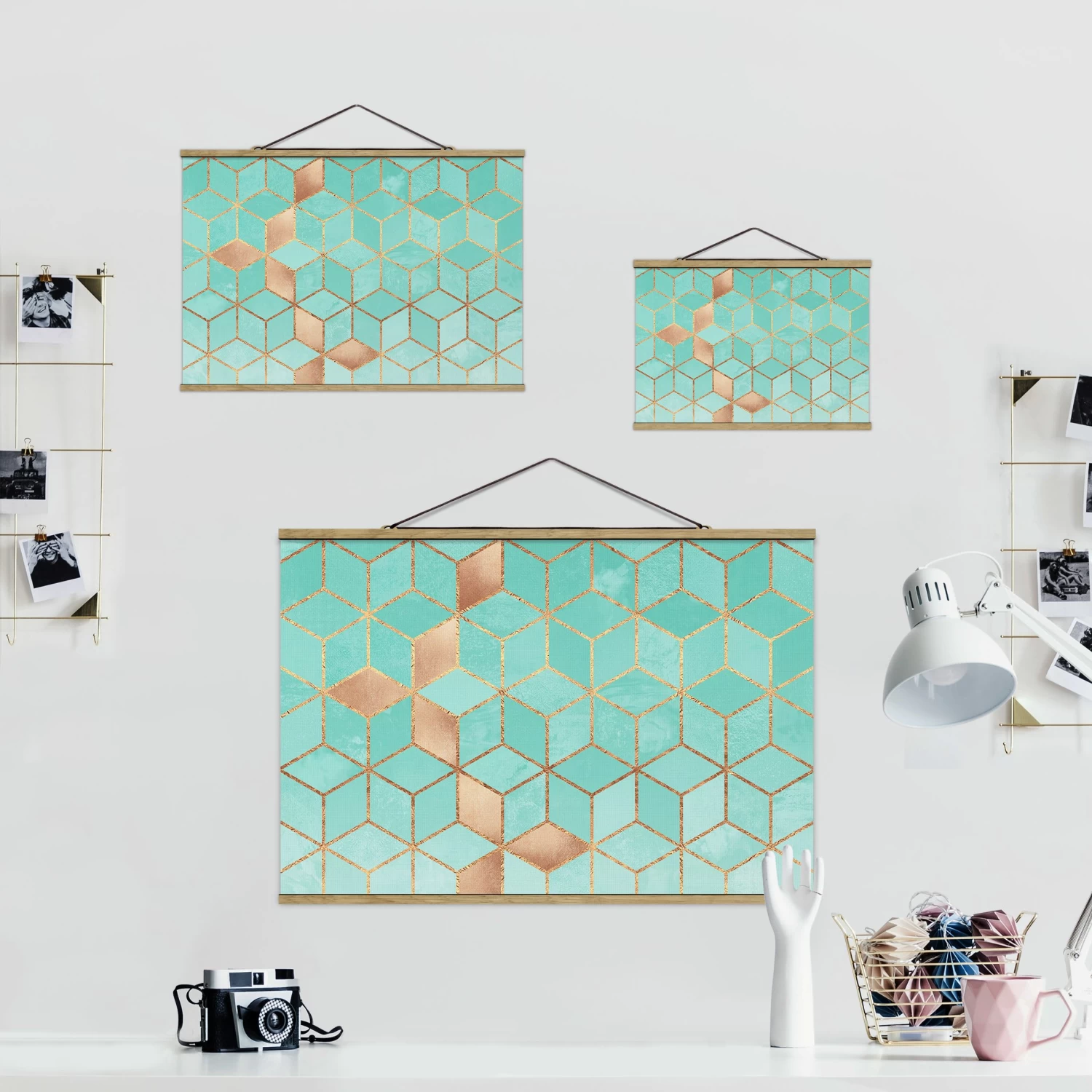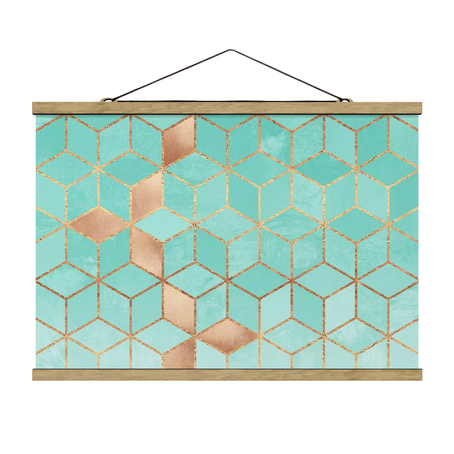 Stoffbild – E. Fredriksson – Türkis Weiß Goldene Geometrie In Türkis