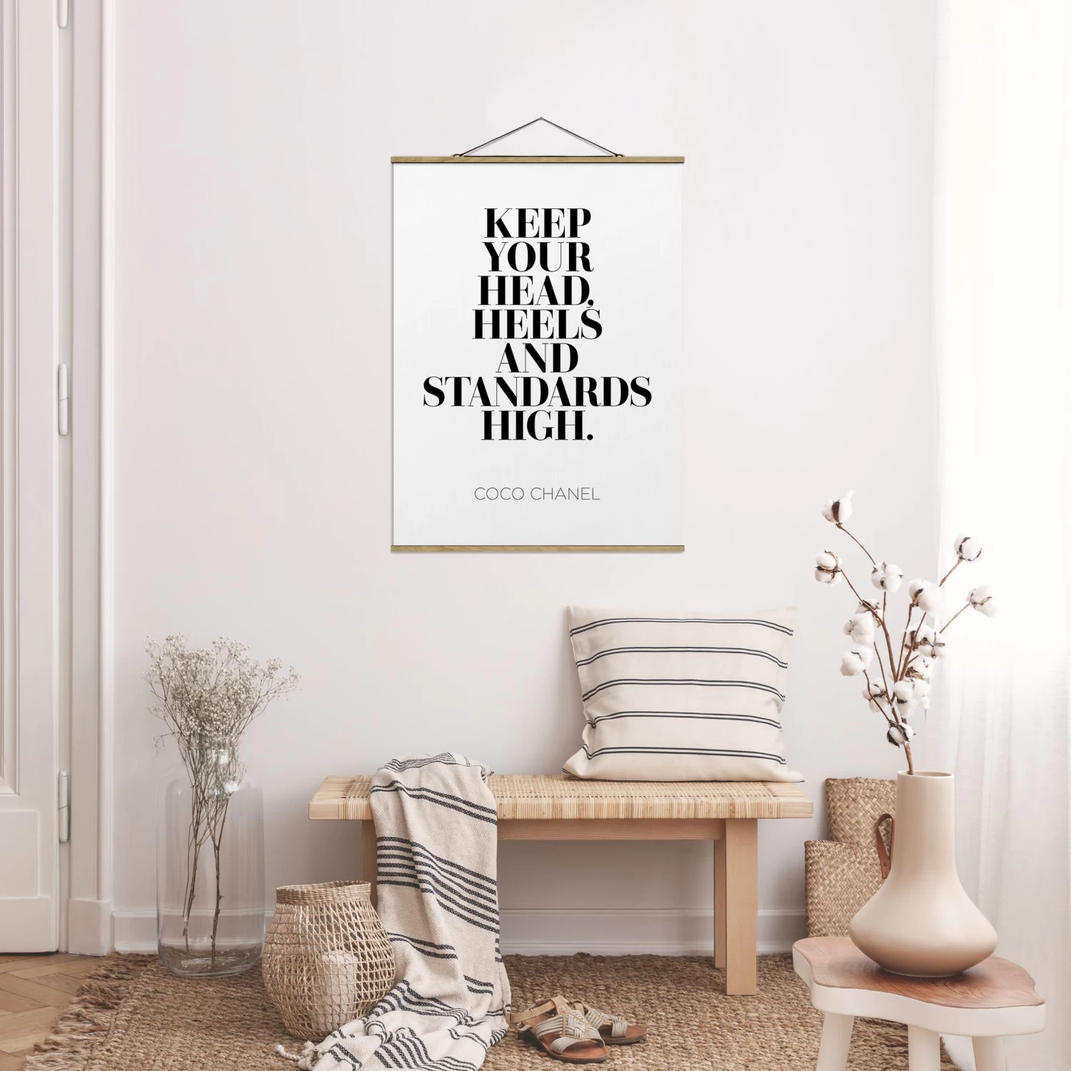 Stoffbild Mit Posterleisten – Keep Your Head High In Weiß