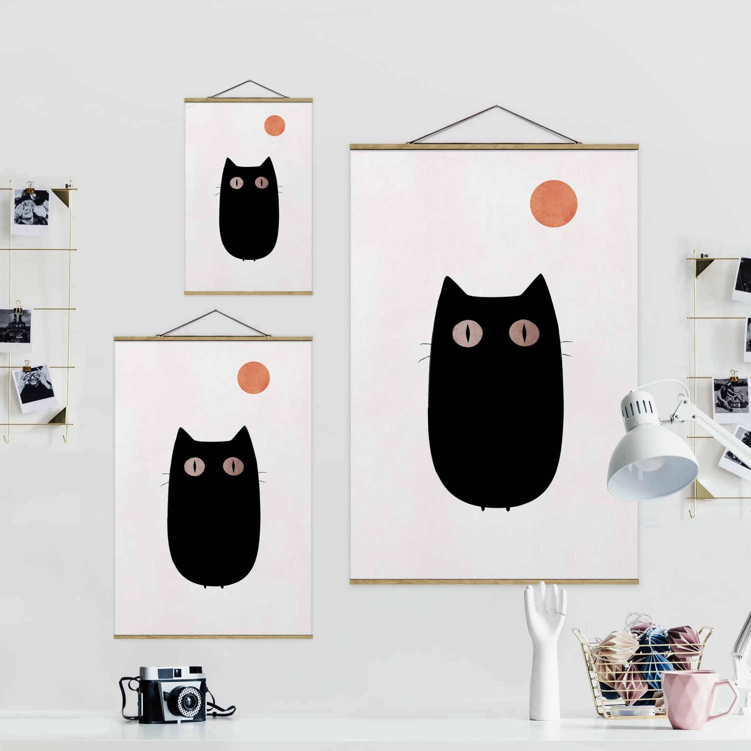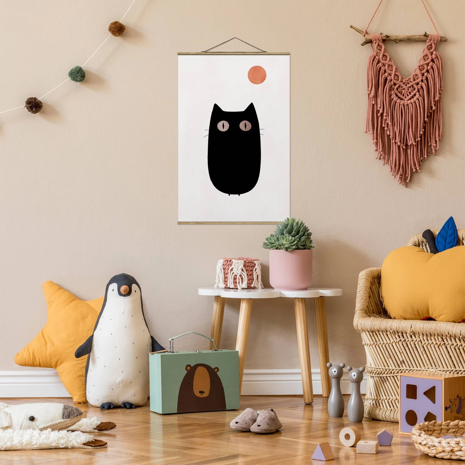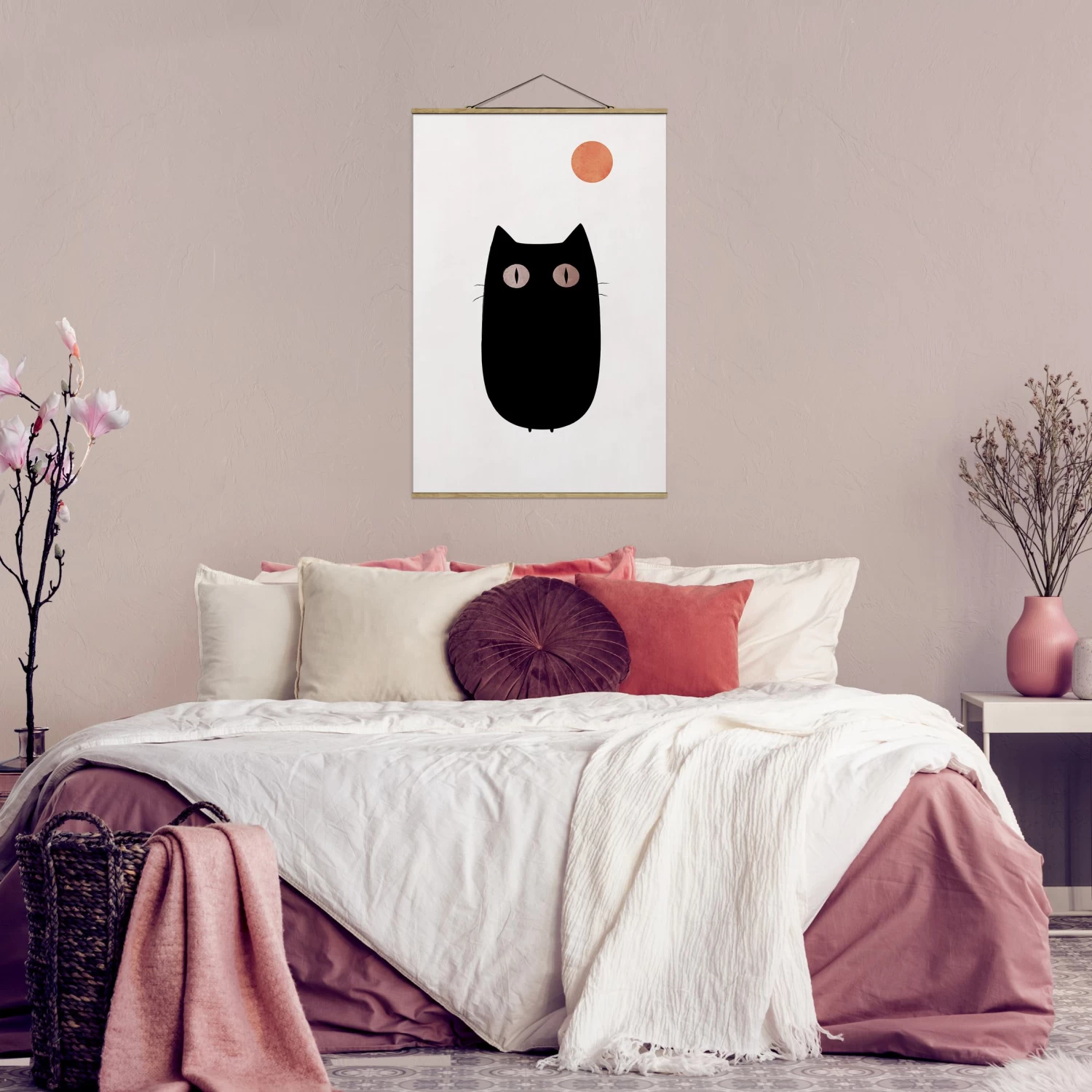 Stoffbild Mit Posterleisten – Schwarze Katze Illustration In Schwarz-Weiß