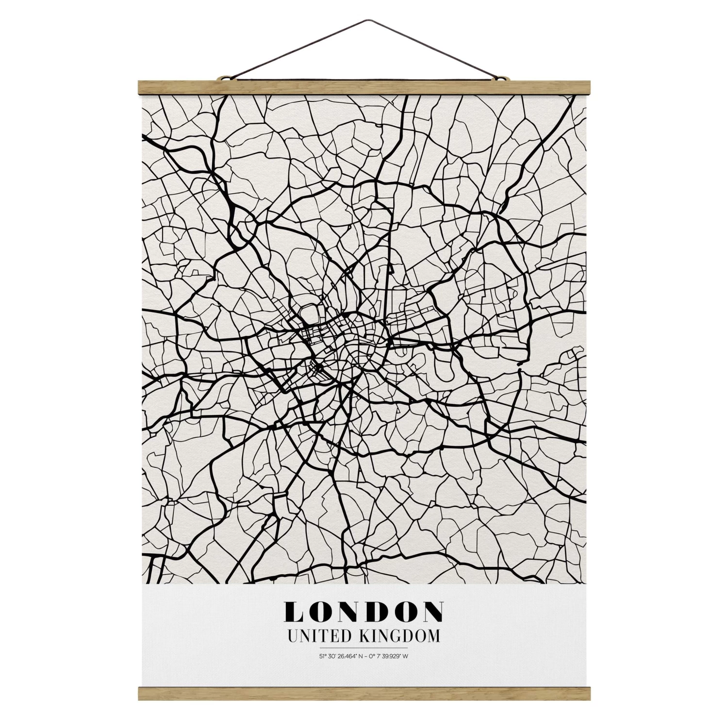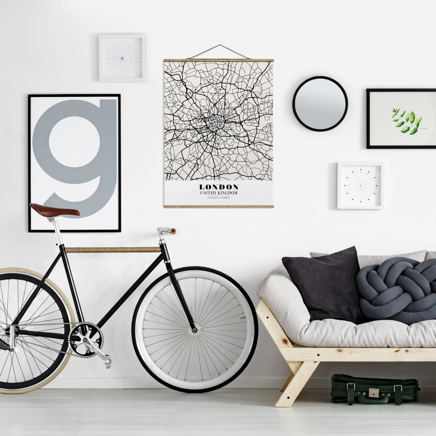 Stoffbild Mit Posterleisten – Stadtplan London – Klassik In Schwarz-Weiß
