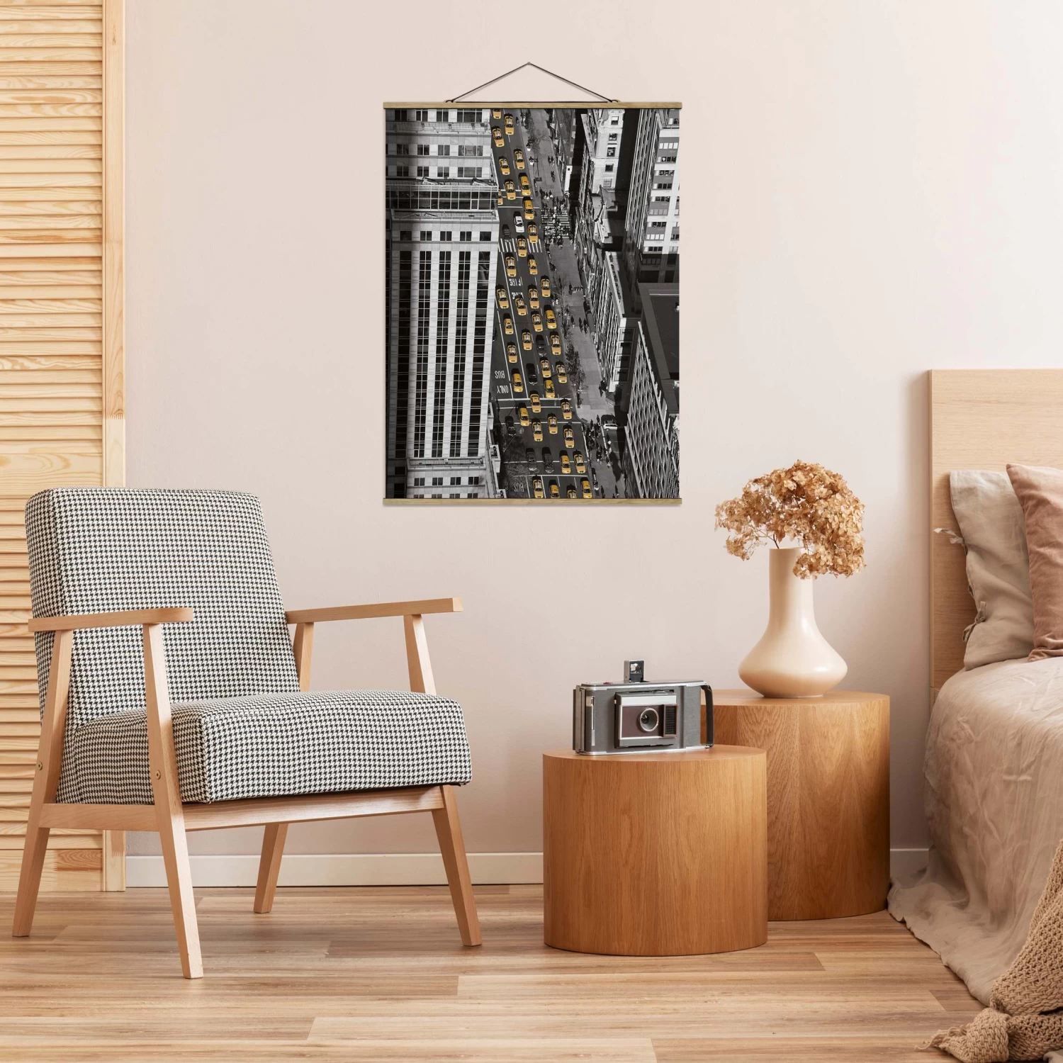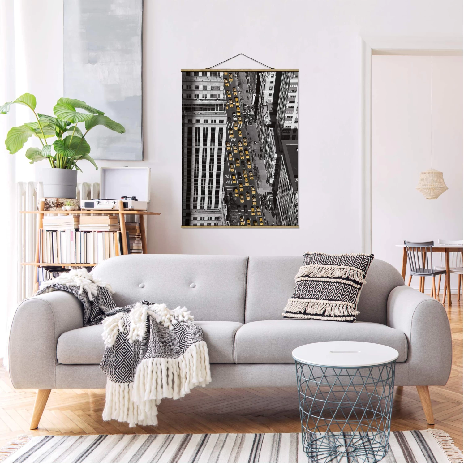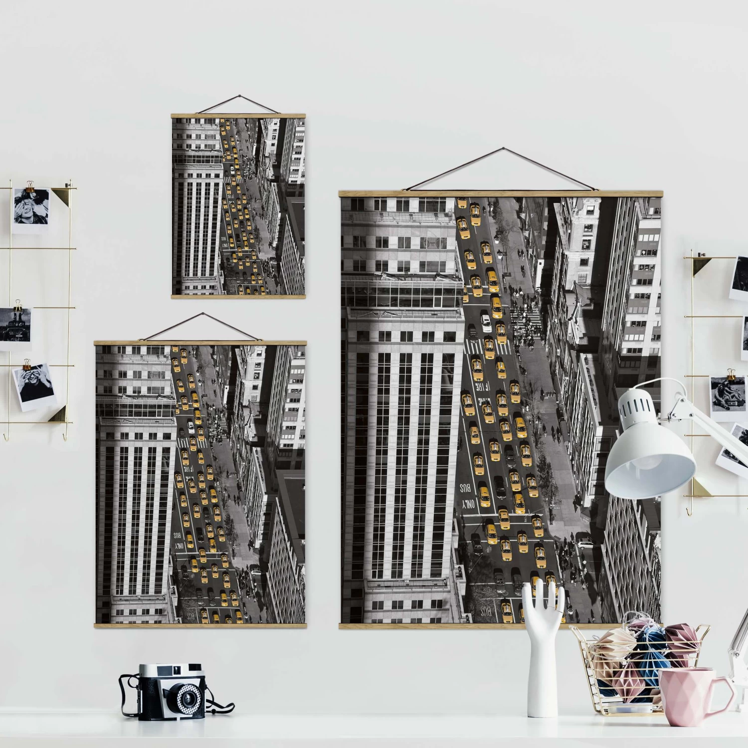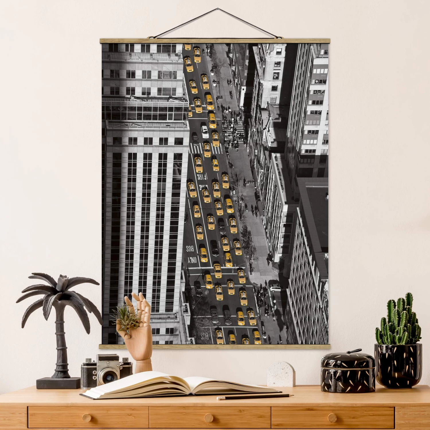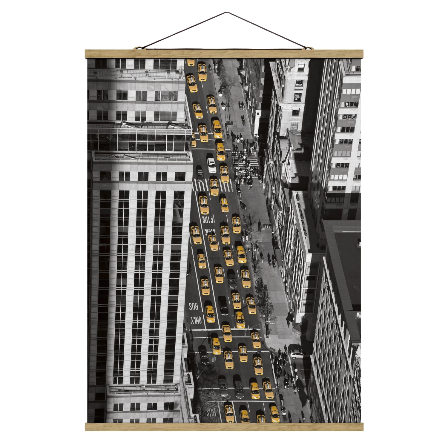 Stoffbild Mit Posterleisten – Taxiverkehr In Manhattan In Schwarz-Weiß