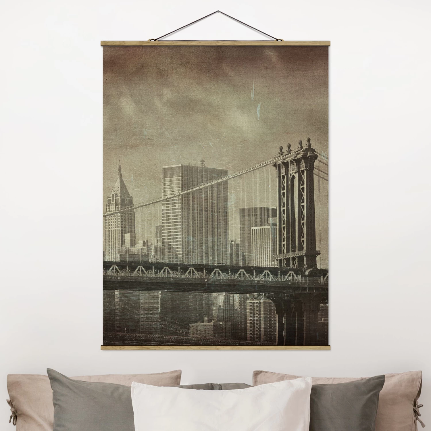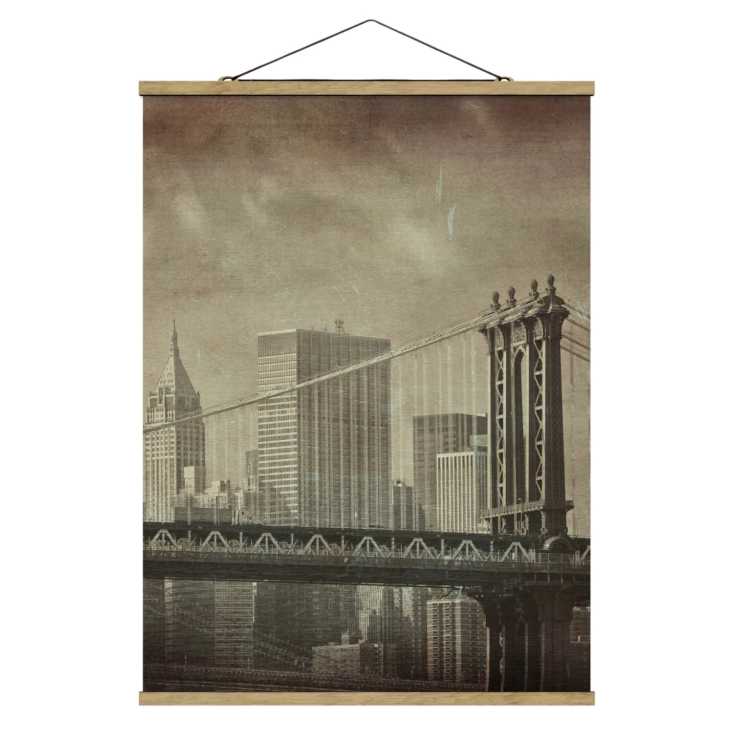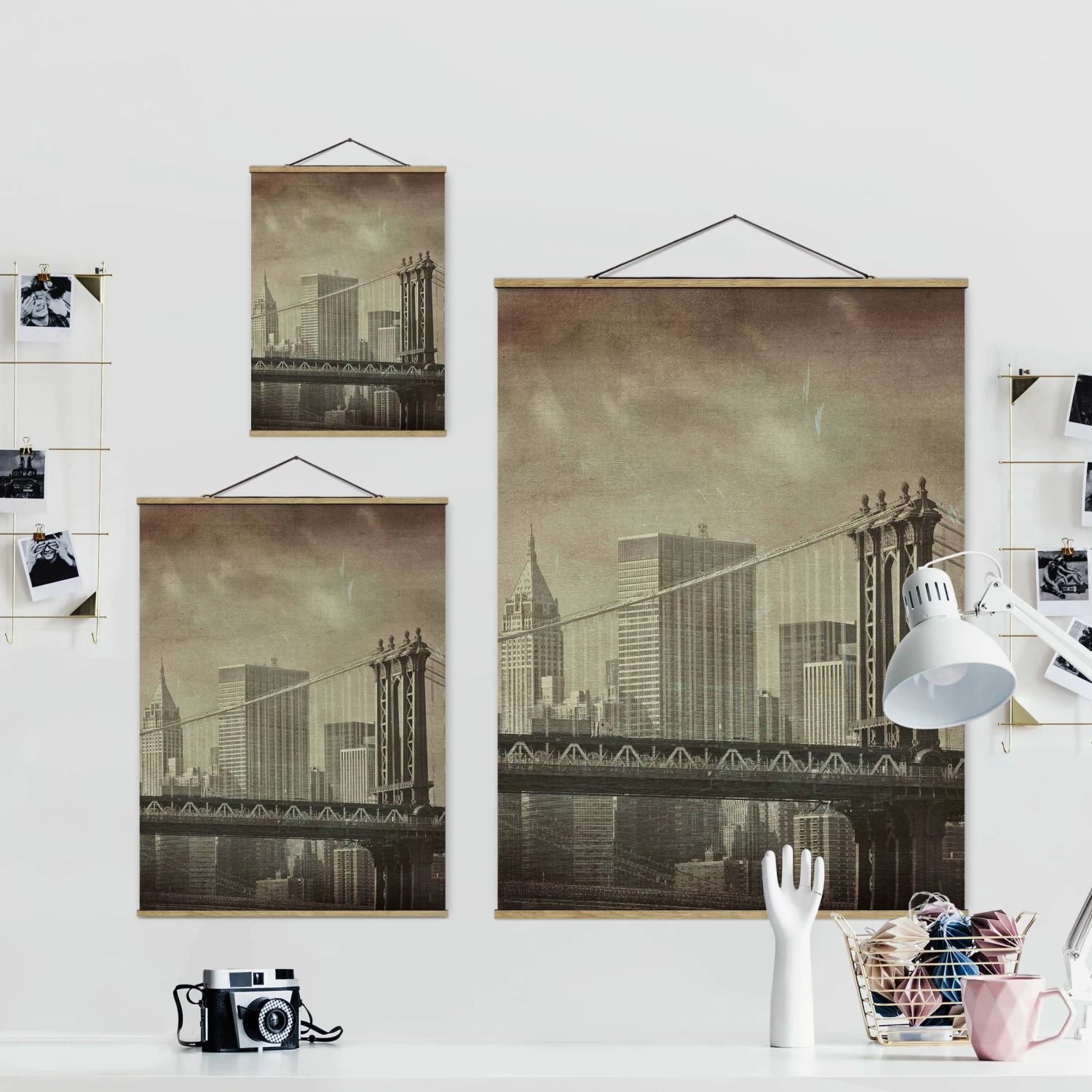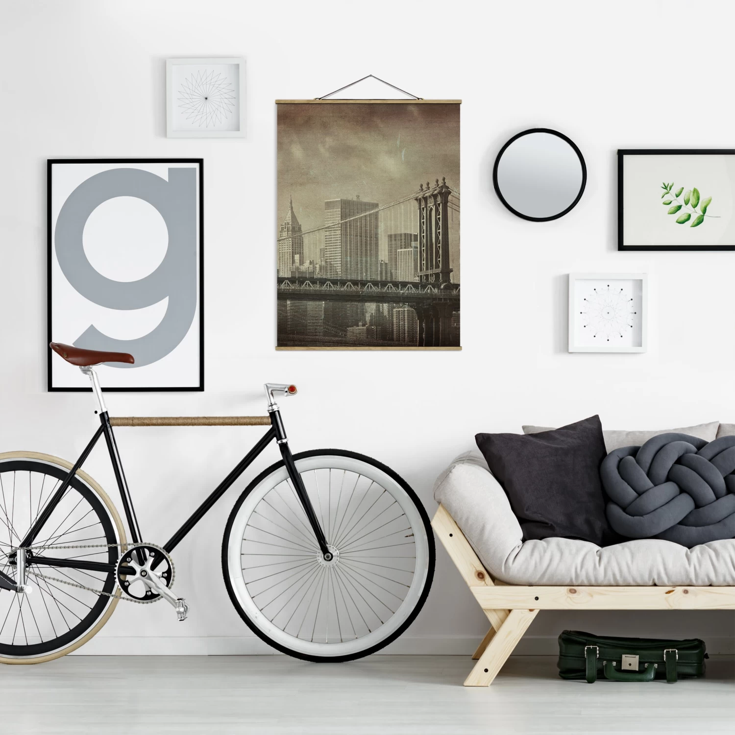 Stoffbild Mit Posterleisten – Vintage New York In Braun