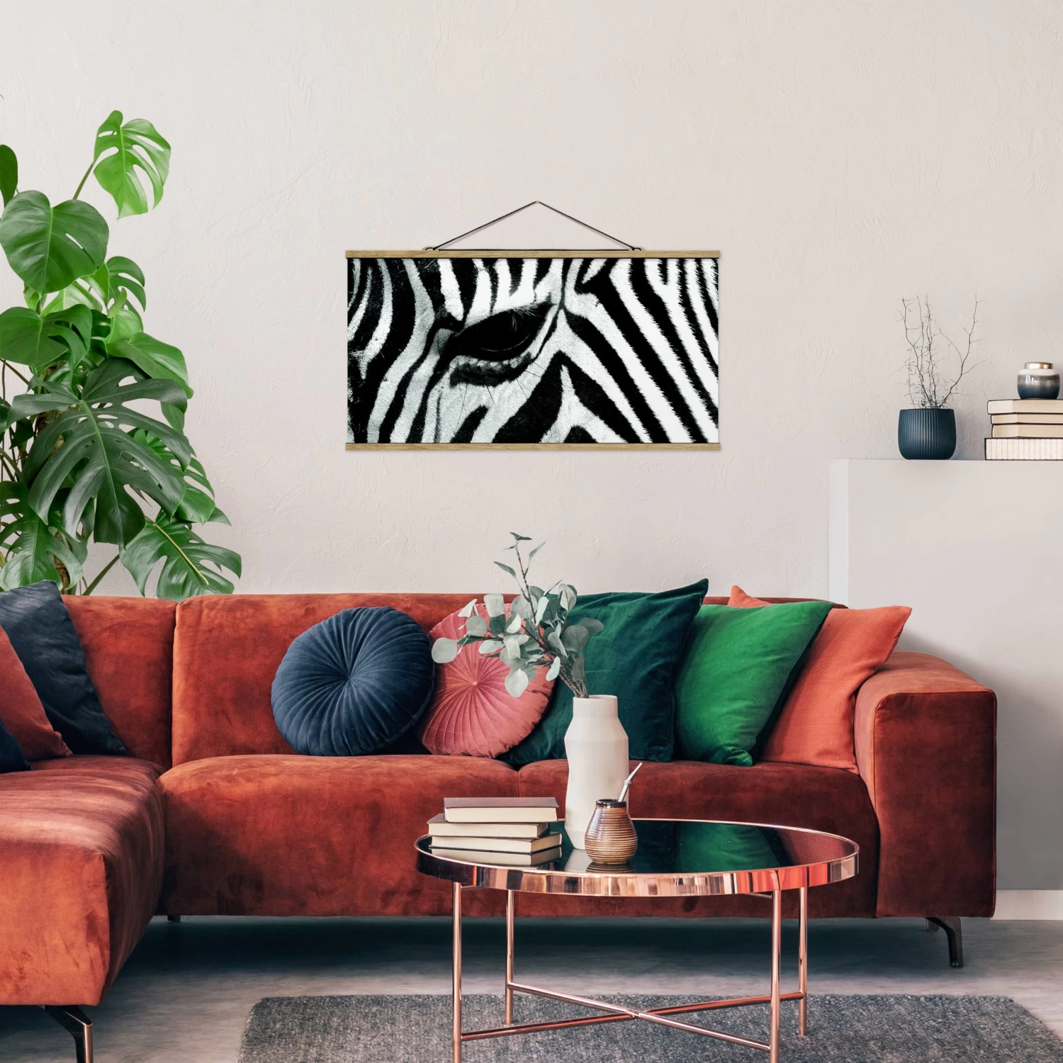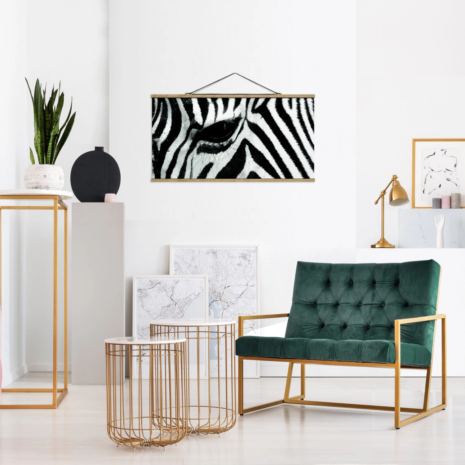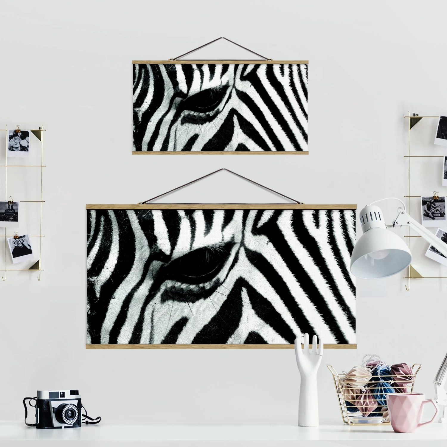 Stoffbild Mit Posterleisten – Zebra Crossing In Schwarz-Weiß