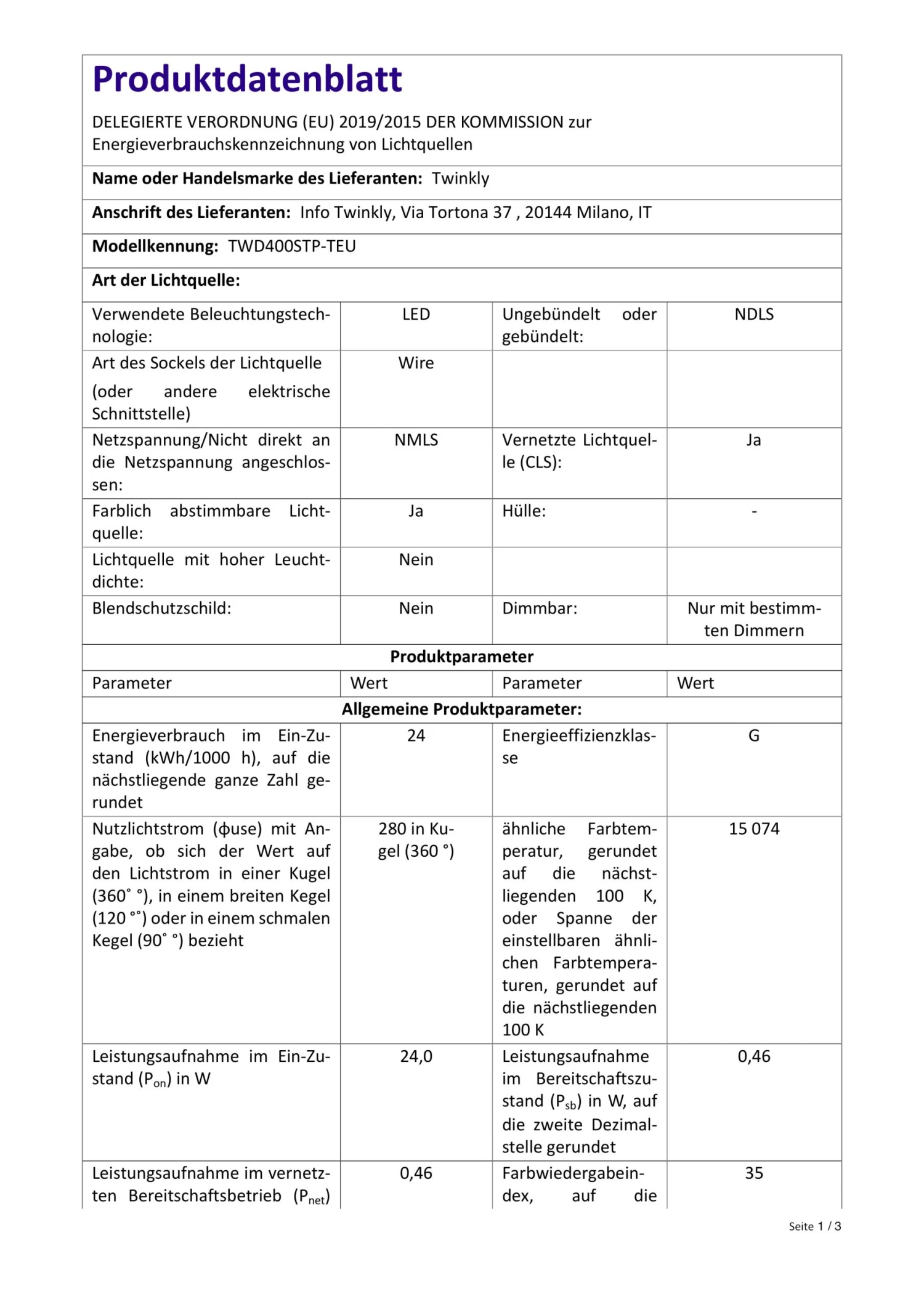 Geeignet für den Innen- und Außenbereich, Schutzart IP44. Energieffizienzklasse „G“