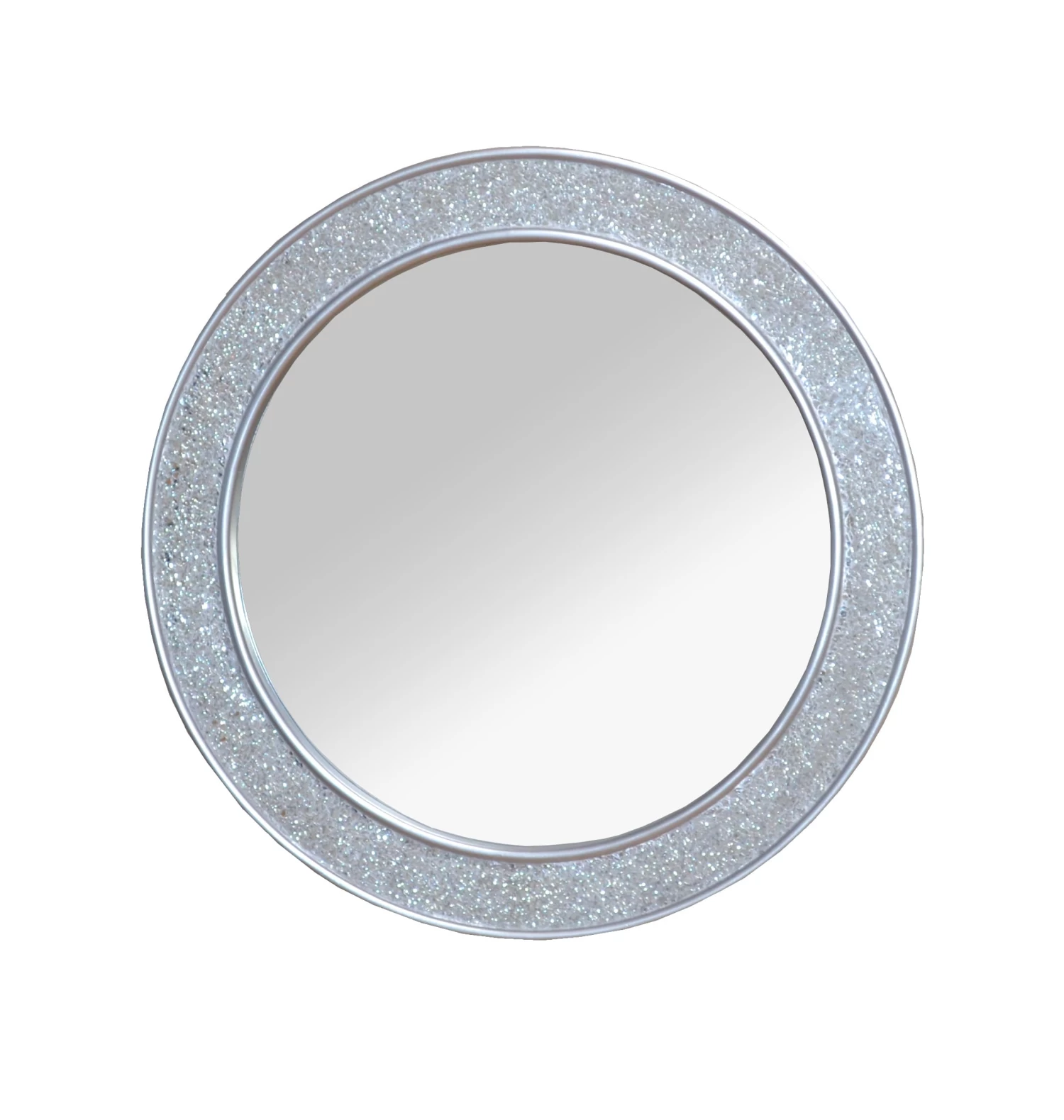 Moderner Wandspiegel, rund, mit einem MDF-Rahmen, der mit Polyurethan, antik silberfarben beschichtet ist. Optisch einer Mosaik-Oberfläche nachempfunden. Der Rahmen ist ca. 7 cm breit, Spiegelfläche ca. 45,5 cm Durchmesser. Der schöne, moderne Wandspiegel lässt sich im gesamten Wohnbereich kombinieren. Artikelmaße: Durchmesser ca. 60 cm x Tiefe ca. 3 cm.