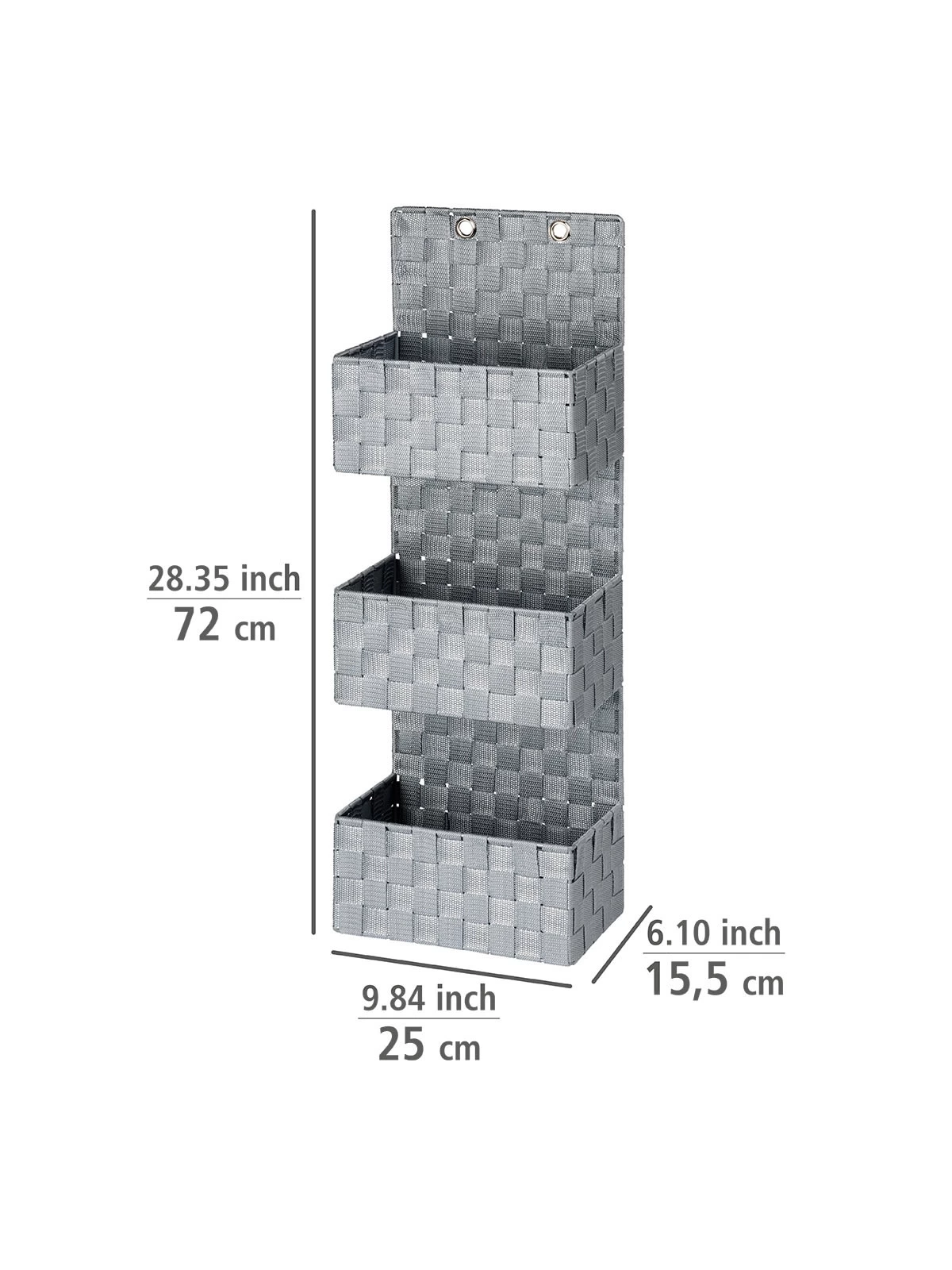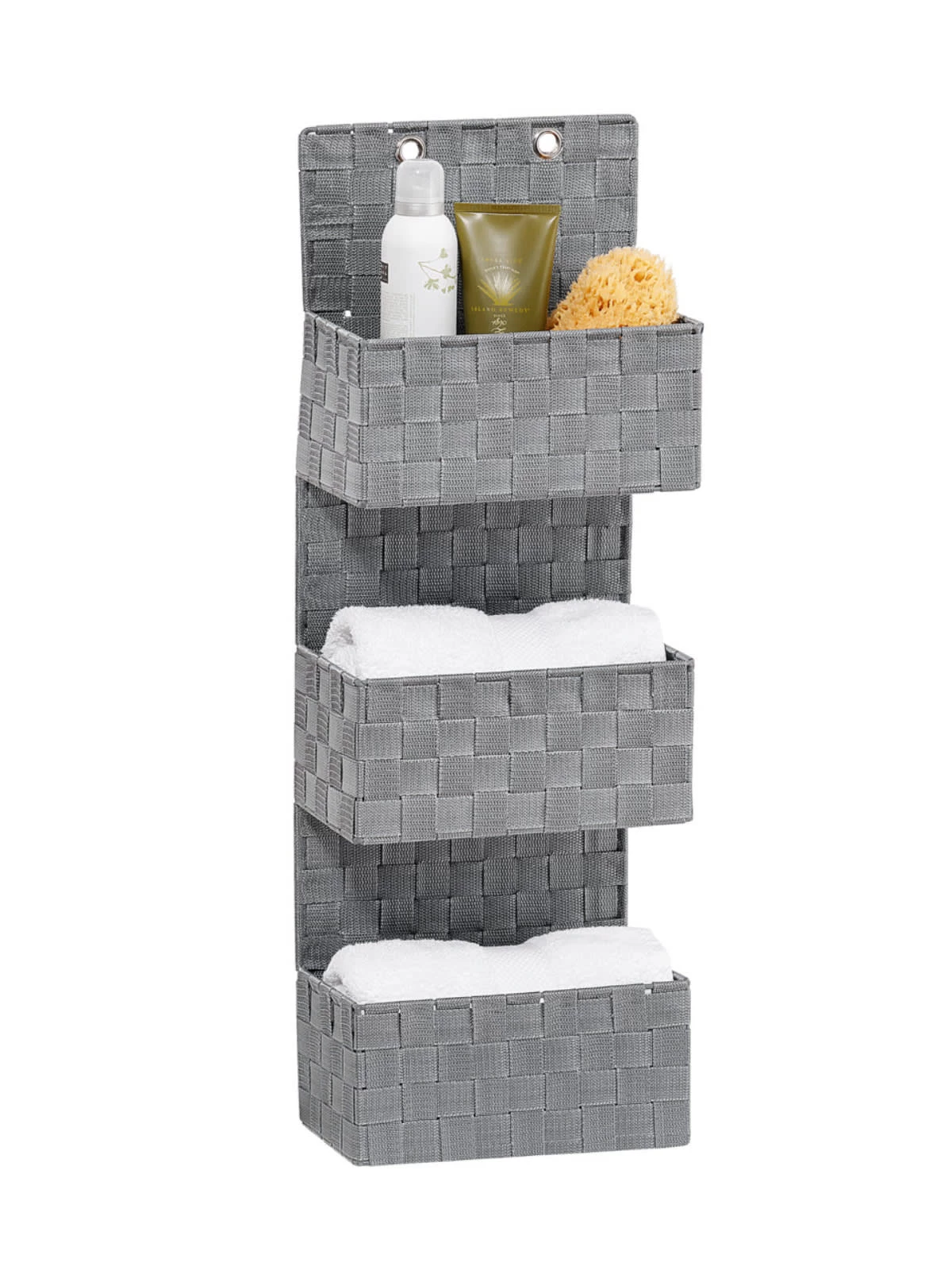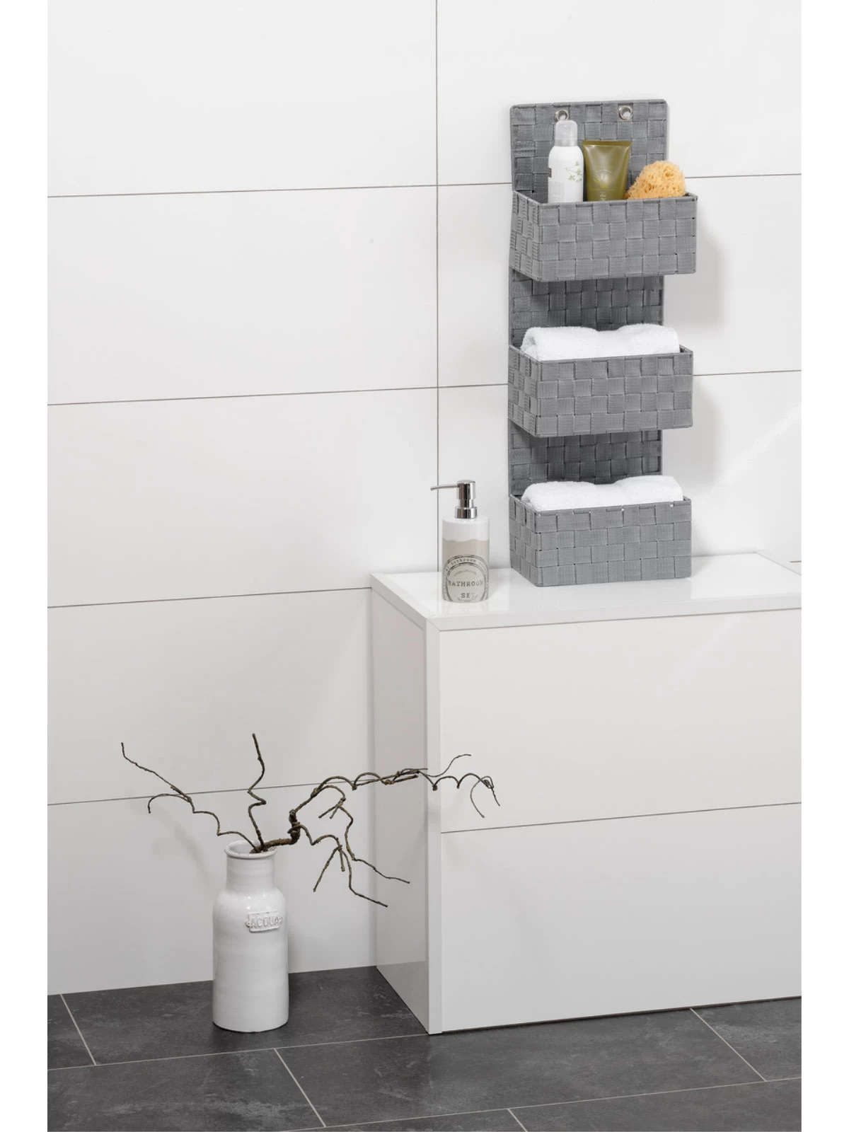 Der moderne Badorganizer Adria Grau macht Ordnungsproblemen ein Ende. Der clevere Helfer aus hochwertigem Kunststoff-Geflecht mit stabilisierendem Metallgestell bietet auf drei Etagen viel Platz und Übersicht für Spangen, Bürsten oder andere Badezimmerutensilien. Besonders praktisch: Der Badkorb lässt sich ganz einfach stellen, hängen oder an die Wand schrauben – Sie haben die Wahl.