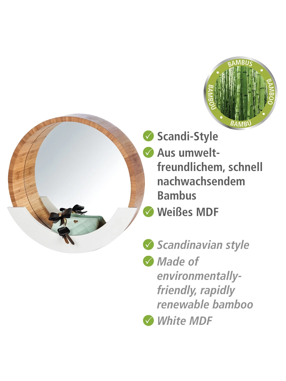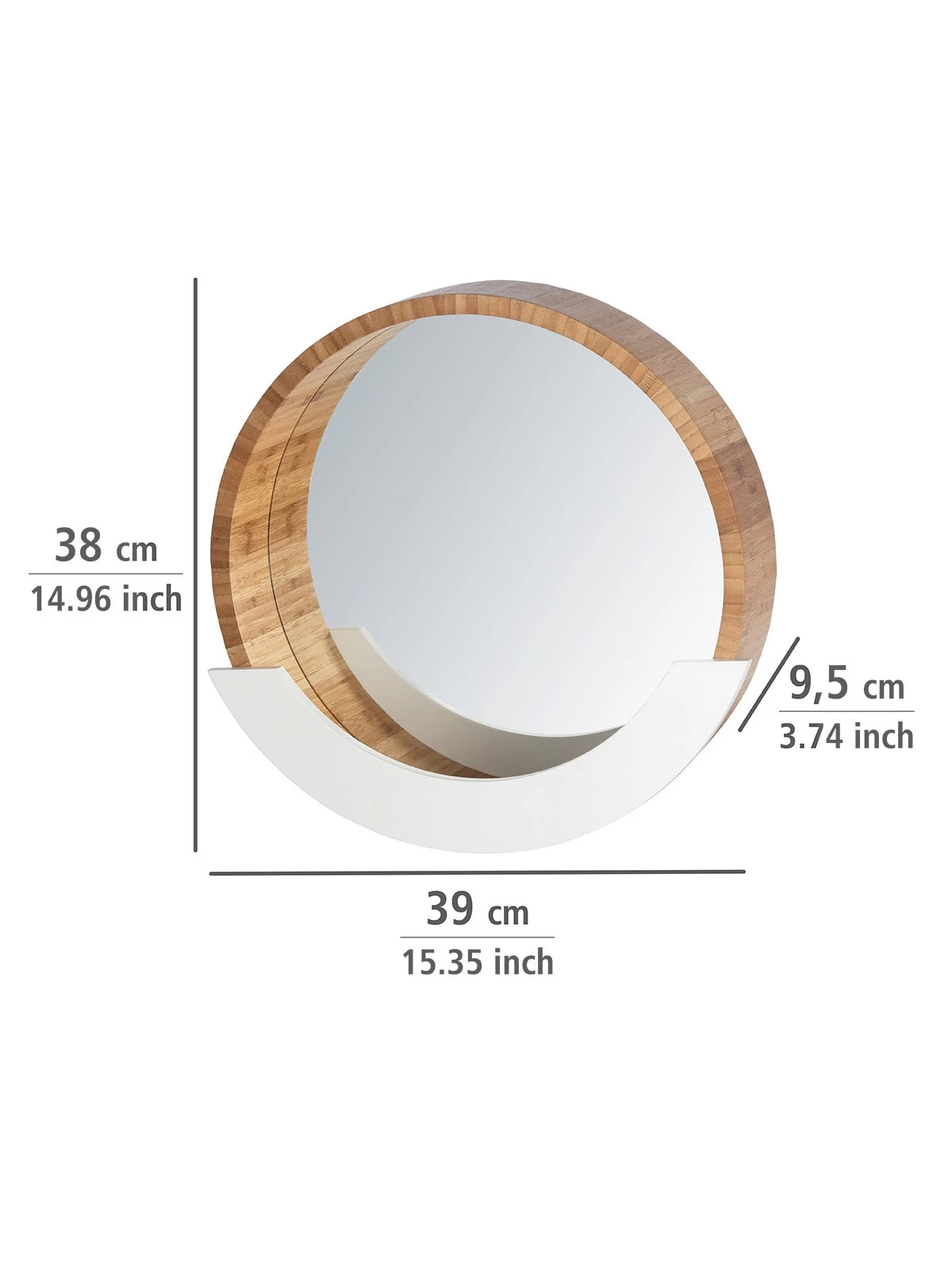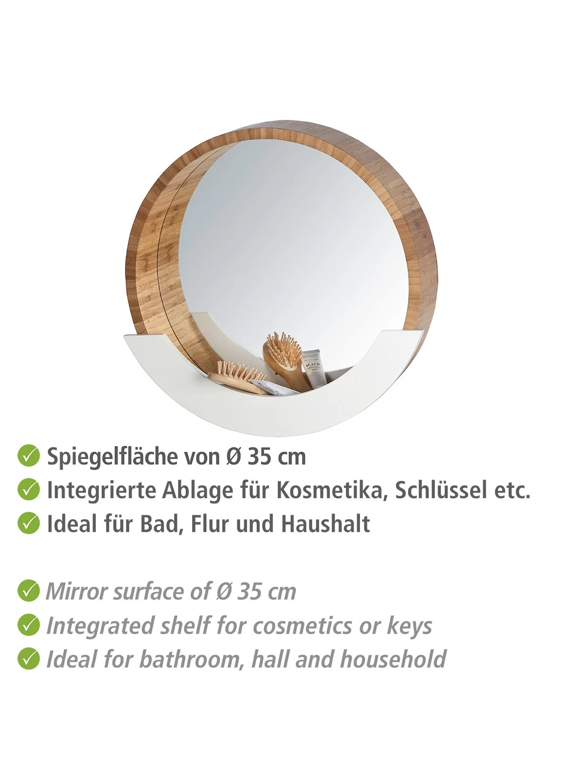 Dieser moderne Wandspiegel mit integrierter Ablage bietet dekorativen Platz für Schlüssel, Handy oder Kosmetika. Das besondere Design und die große Spiegelfläche von Ø 35 cm rundet die Silhouette des WENKO Kosmetik-Wandspiegels elegant und hochwertig ab. So macht der Spiegel nicht nur im Badzimmer für die tägliche Rasur oder das tägliche Make-up eine gute Figur, sondern setzt sich auch stilvolle Akzente im Schlafzimmer, Flur und gesamtem Haushalt.