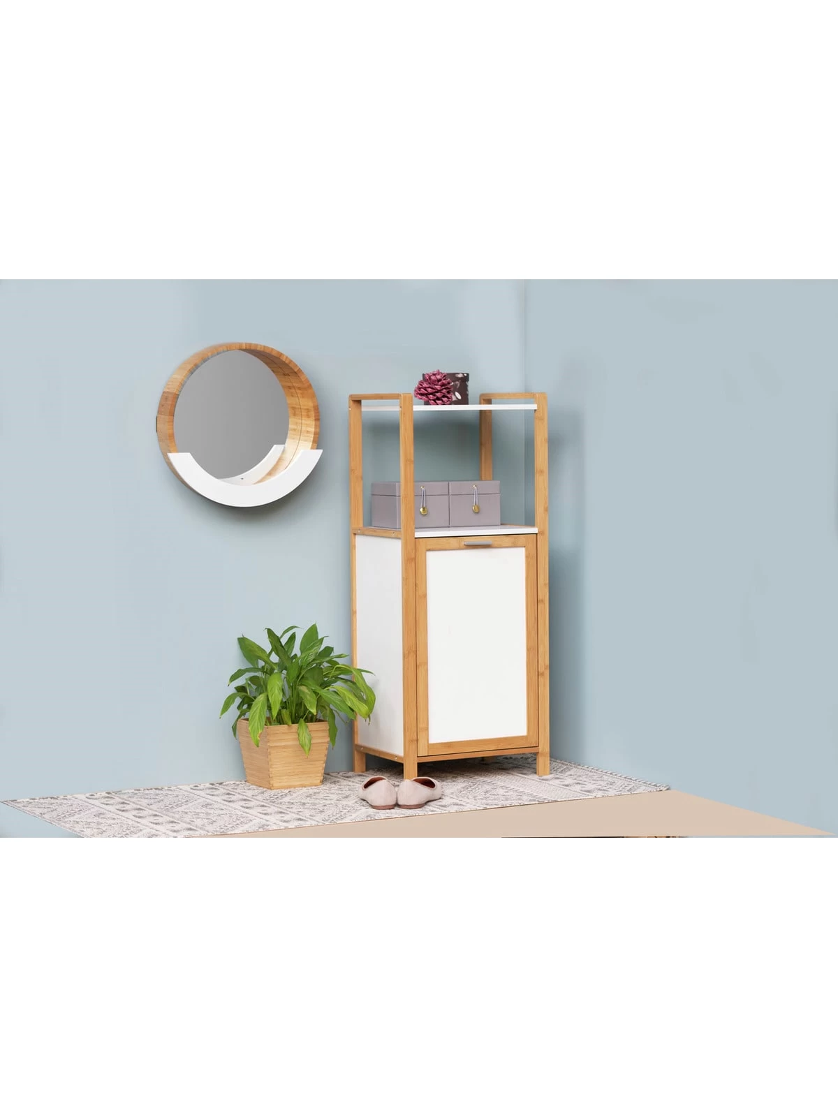 Alle Einrichtungsgegenstände sind aus hochwertigem Bambus gefertigt, welcher hart und widerstandsfähig ist. Auch unter ökologischen Aspekten bieten alle Möbelstücke der Finja-Serie klare Vorteile: Bambus ist ein schnell nachwachsender Rohstoff und liegt absolut im Trend. Die MDF-Ablage ist im schlichten Weiß gehalten.